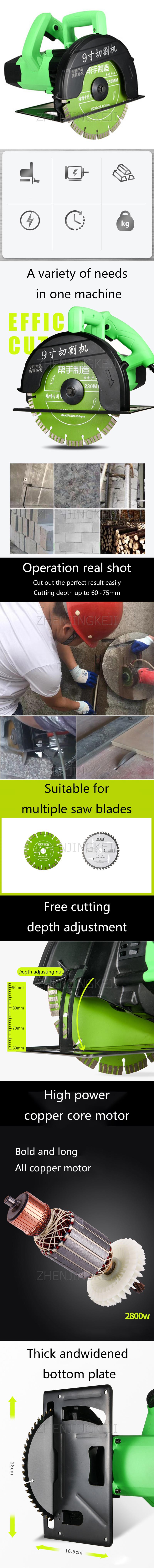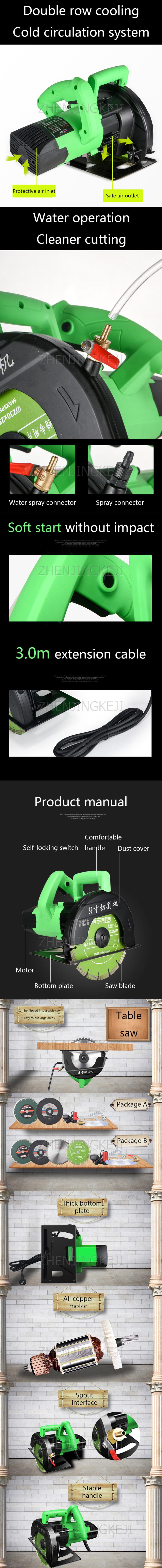 Модель: Z1E-230 Напряжение: 220 В Мощность: 2800 Вт Вес: 7 кг Диапазон диаметра режущего диска: 180 мм ~ 230 мм Скорость без нагрузки: 4300р/мин Глубина резки: 60 ~ 75 мм Материал корпуса: АБС-пластик Длина шнура питания: 3,0 м Источник питания: AC Режим работы: ручной Функция: шлицевая стена, каменная плита, цементная доска, светильник для резки кирпича