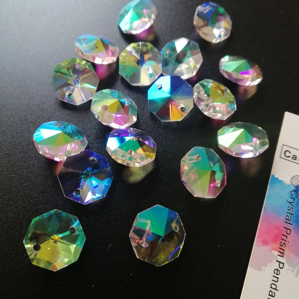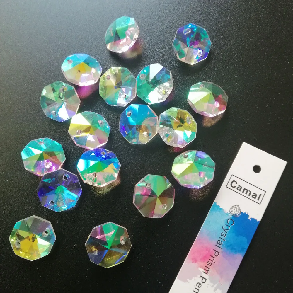 Camal, 20 шт., 14 мм, AB, цветные, яркие, с кристаллами, восьмиугольные, свободные бусины, 2 отверстия, люстра, лампы, запчасти, занавески, ремесло, свадебное украшение