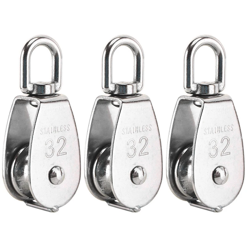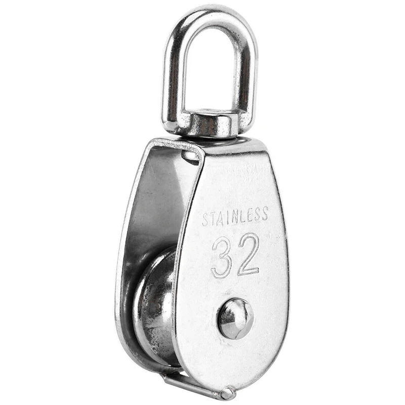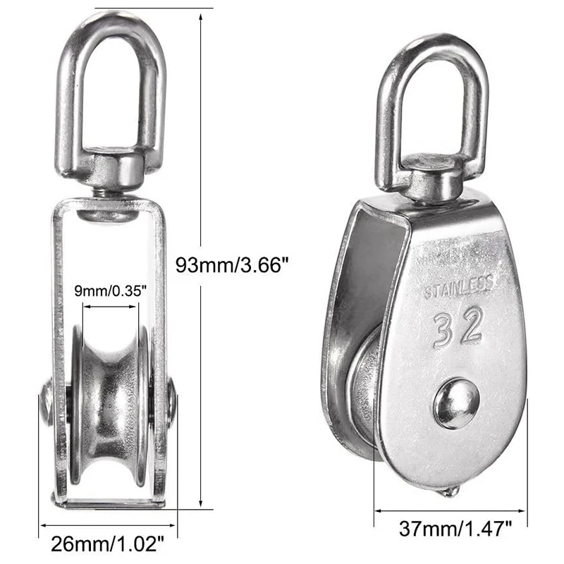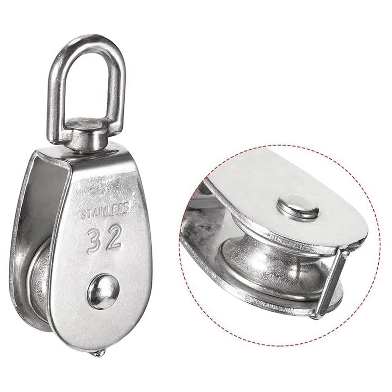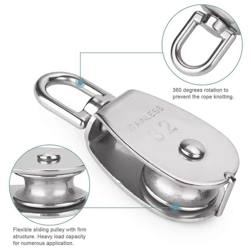 Простота в использовании: Этот 32 мм одиночный блок имеет эргономичную конструкцию. Вращение на 360 градусов для предотвращения завязывания веревки и простой в использовании. Гибкий шкив имеет большую грузоподъемность и подходит для различных применений, с нагрузкой 551lbs.