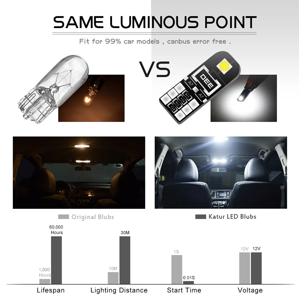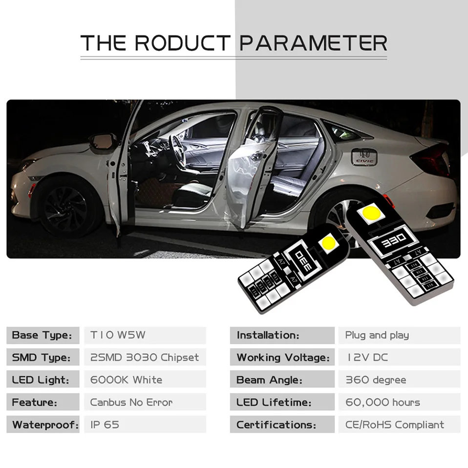 10 шт. светодиодный T10 W5W светодиод Шина CAN свет лампы ошибок салона потолочный плафон Автомобильные стояночные огни Задний багажник лампа 6000K белый 12V