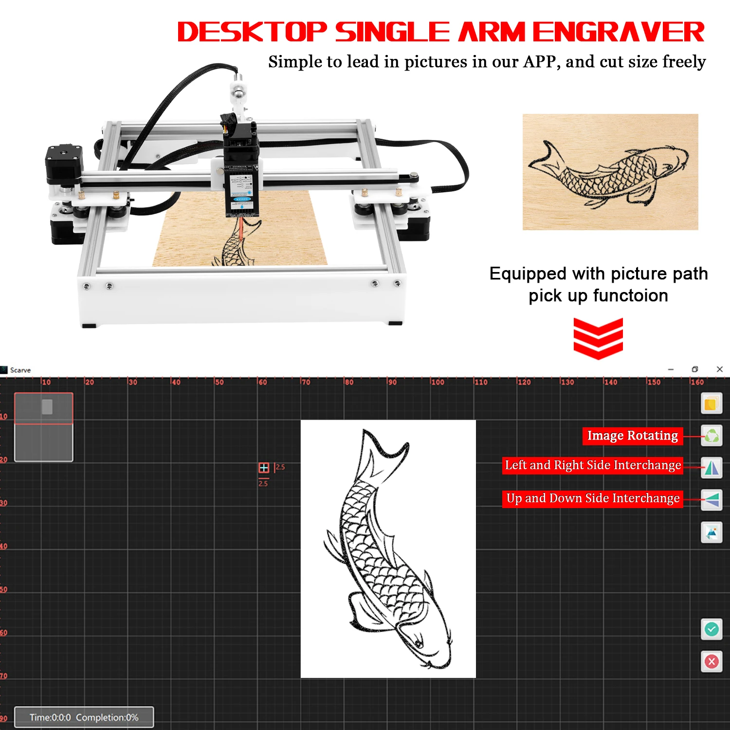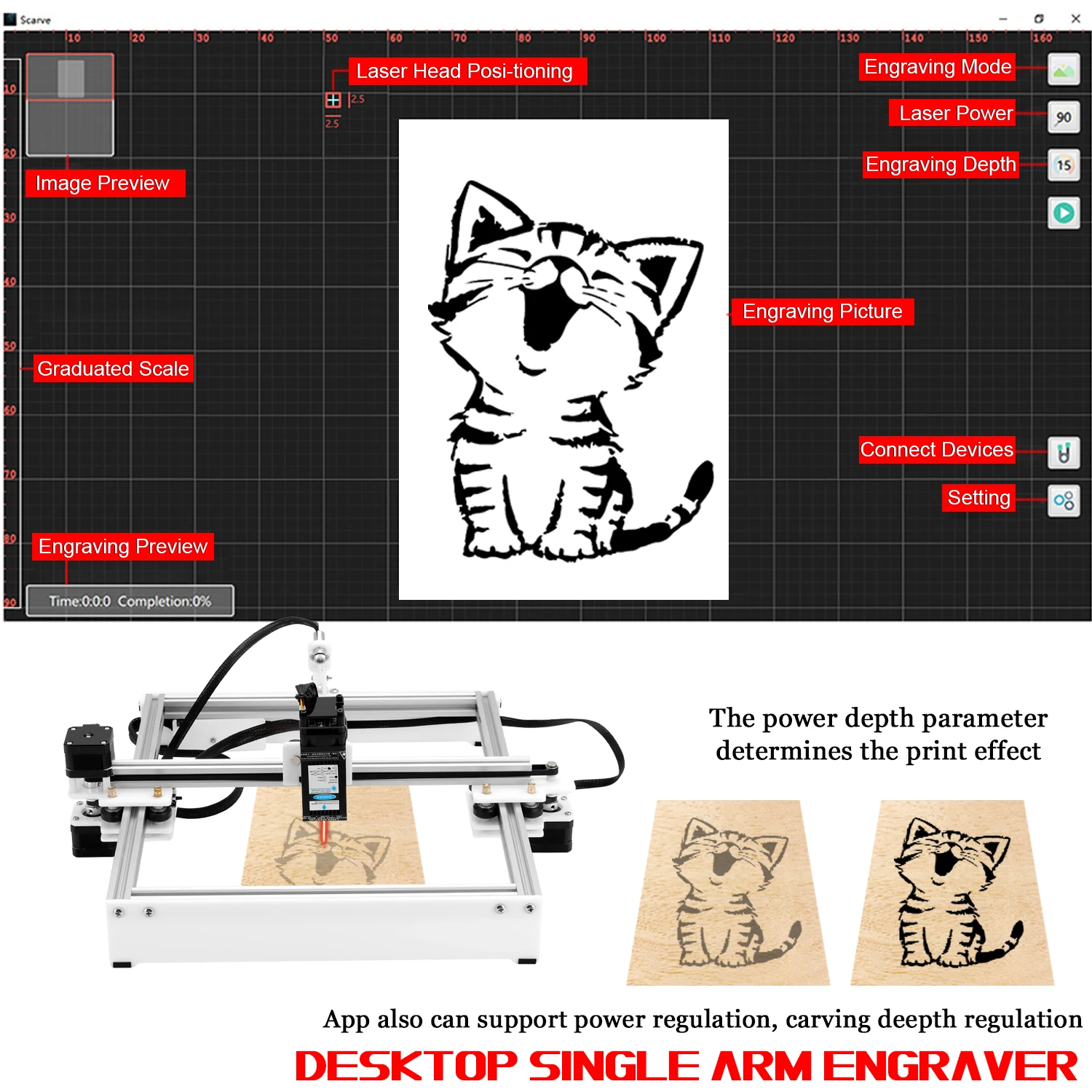 Это своего рода Высококачественная машина для резьбы, с большой гравировкой 230*280 мм, удовлетворяет все виды потребностей. Автономное управление и красный светильник обеспечивают гибкую и высокоточную гравировку и резку. Используйте Высокоточный двигатель с ЧПУ, используйте высокоинтегрированный импортный зажим, сильный и мощный, с эффектом тонкой гравировки и низким уровнем отказов. Красный светильник, функция позиционирования, точность положения, вы можете открыть/закрыть красный светильник через приложение. Вы можете попробовать.