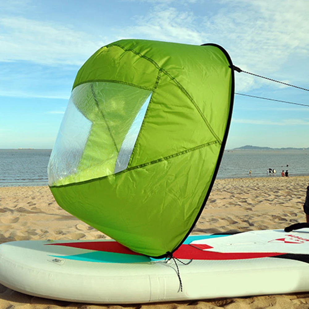 Это компактный парус, используемый для каноэ и КАЯКОВ. Его можно легко установить и быстро сложить. Это помогает поймать ветер и увеличить мощность. Отличный инструмент для использования энергии ветра, чтобы помочь вам в вашем приключении.