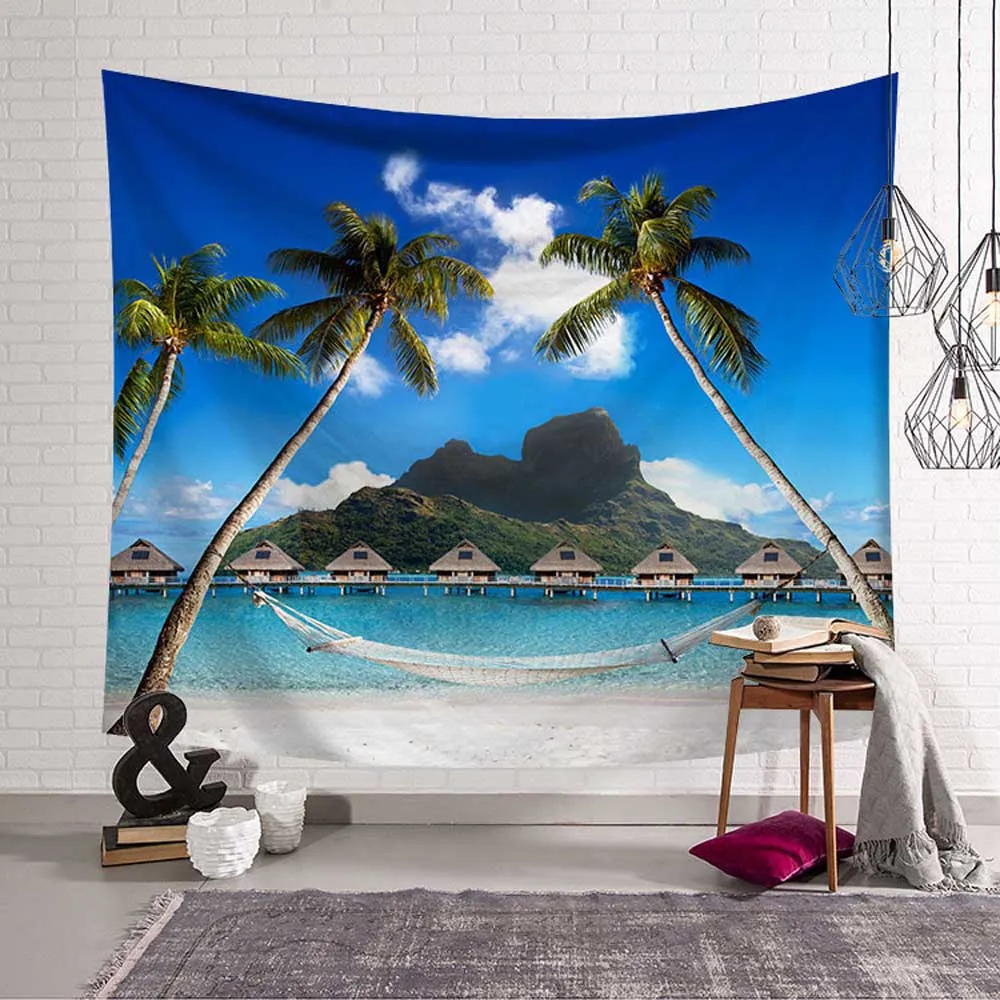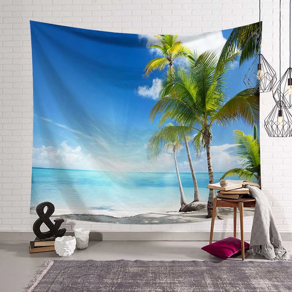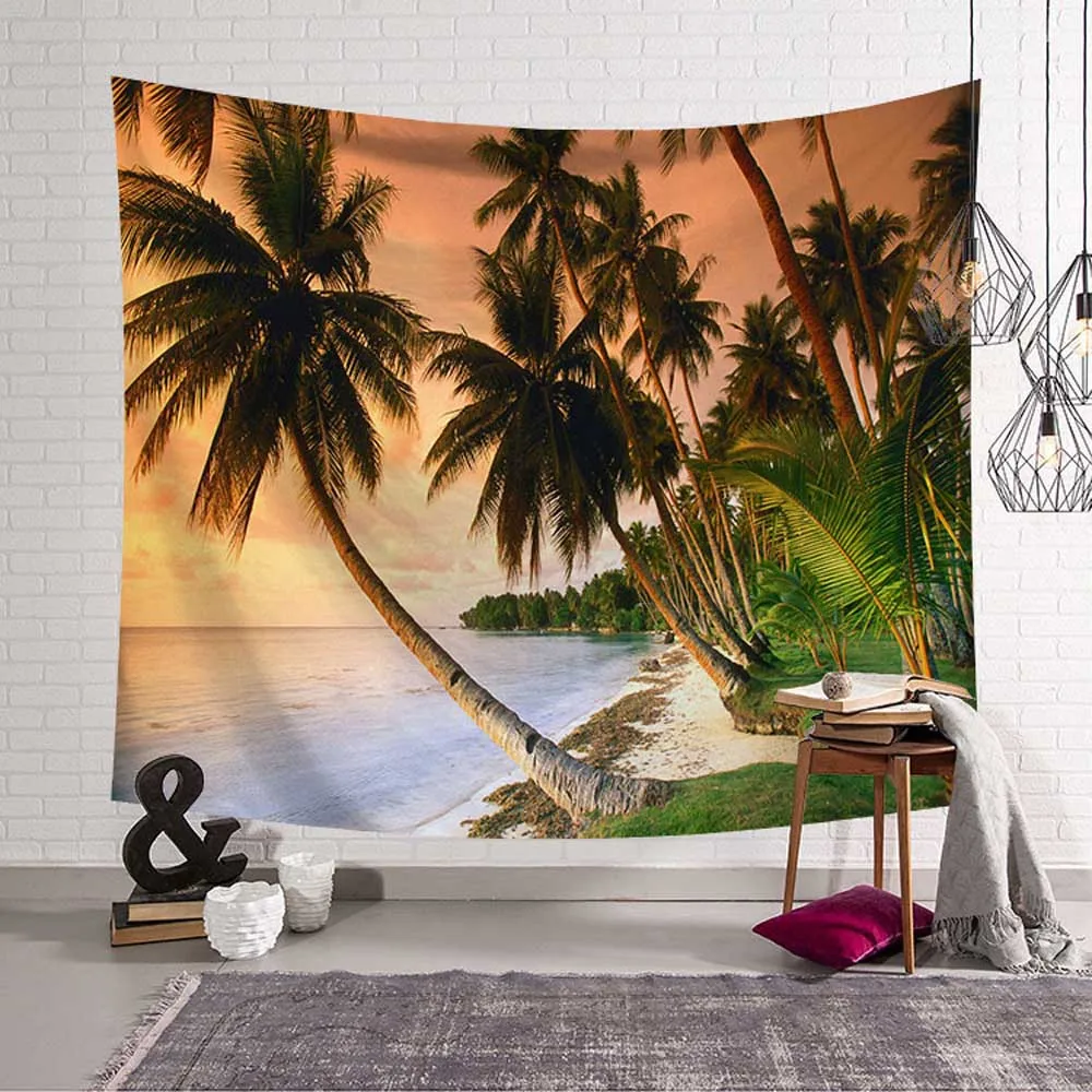 Тропический пальмовый гобелен с изображение листьев настенный морское побережье, закат пейзажные гобелены Йога синее пляжное полотенце Бохо Декор для дома