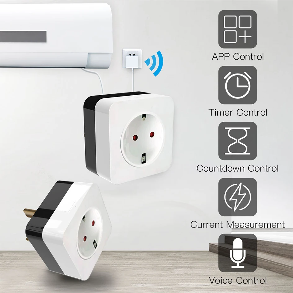 1. Новая Обновленная умная штепсельная вилка кондиционера:Новая вилка кондиционера все-в-одном умнее и мощнее, чем оригинальный ИК-контроллер с более умными функциями, который реализует реальный хороший компаньон для вашего домашнего кондиционера. Просто Подключите вилку кондиционера к смарт-вилке wifi для кондиционирования воздуха, чтобы разумно контролировать ваш домашний Кондиционер.