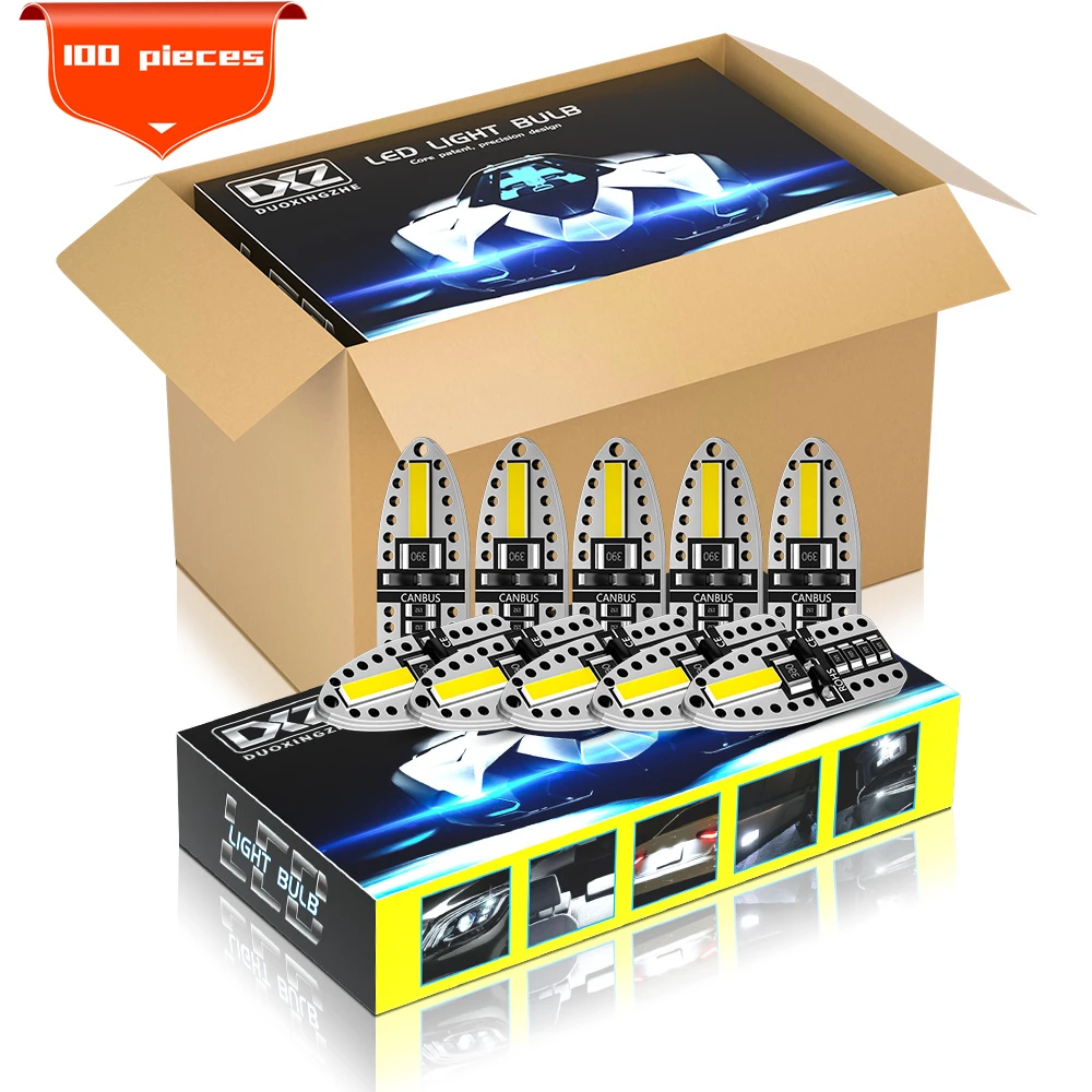 DXZ 100 шт. T10 светодиодный автомобильный W5W светодиодный светильник Canbus 168 194 6000K белый для салона автомобиля купольный светильник парковочные огни светильник с ошибкой Авто 12 В