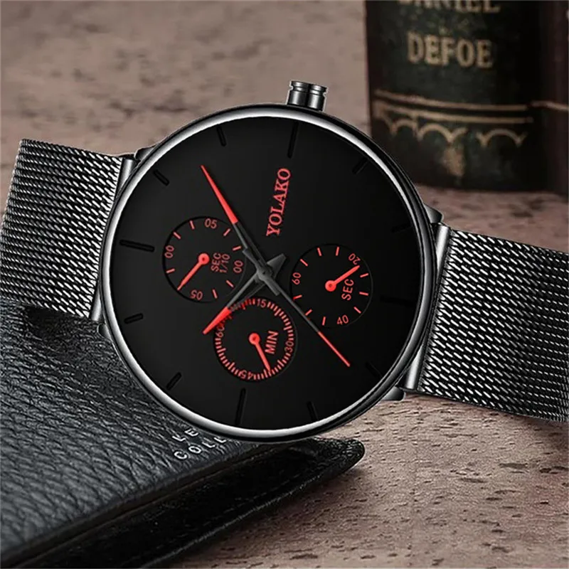 Модные мужские Роскошные Аналоговые часы минималистичные деловые повседневные наручные часы с ремешком-сеткой кварцевые часы Relojes Hombre