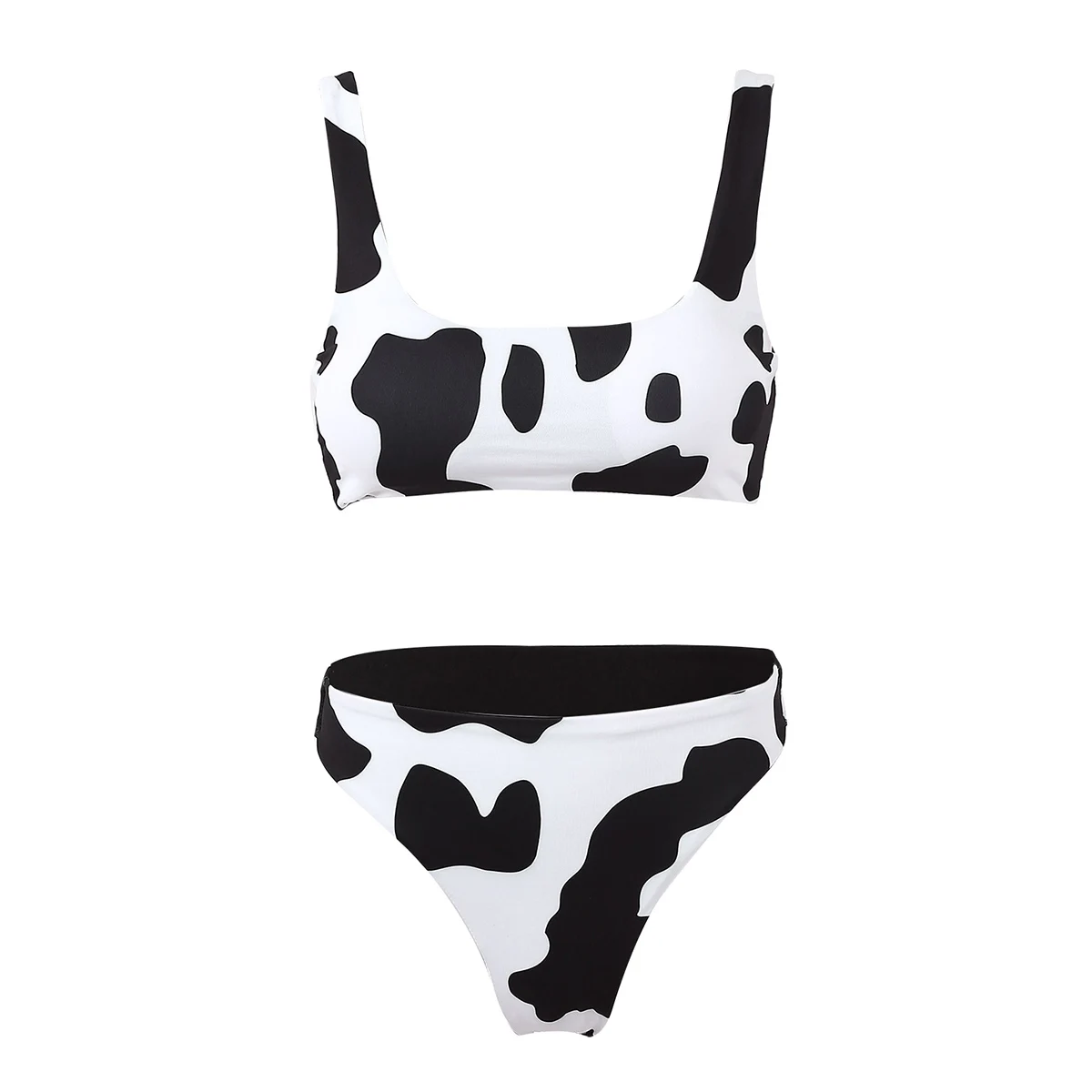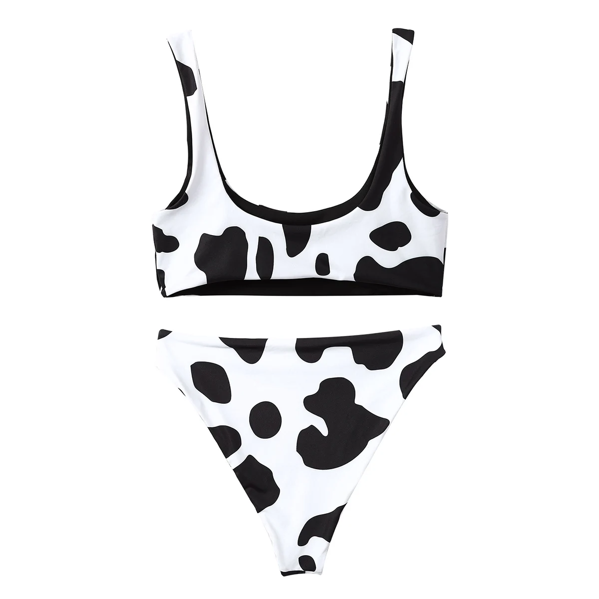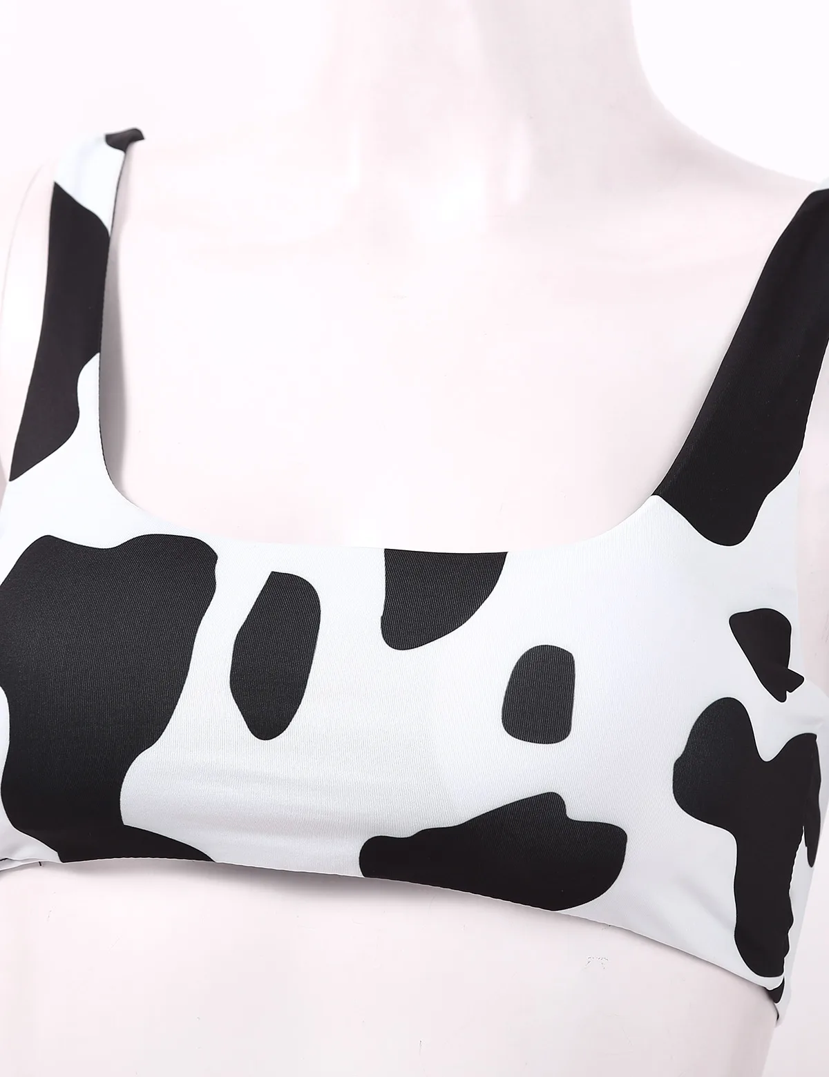 Уникальный дизайн с принтом коровы, топ с u-образным вырезом и без рукавов, со съемной подкладкой, обеспечивает подтяжку и форму, без косточек.