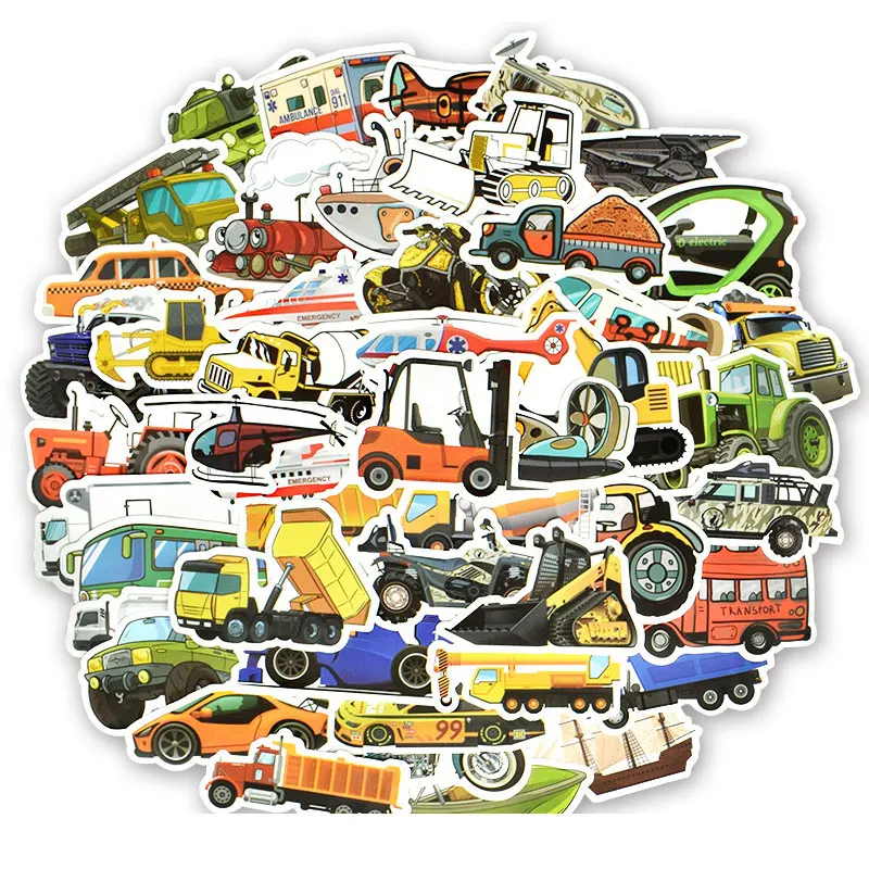 50 шт. Инженерная Автомобильная наклейка с автобусом, милые наклейки для грузовиков, мотоциклов, игрушечный мультяшный автомобиль, Pegatinas, для детей, чемодан, гитара для ноутбука