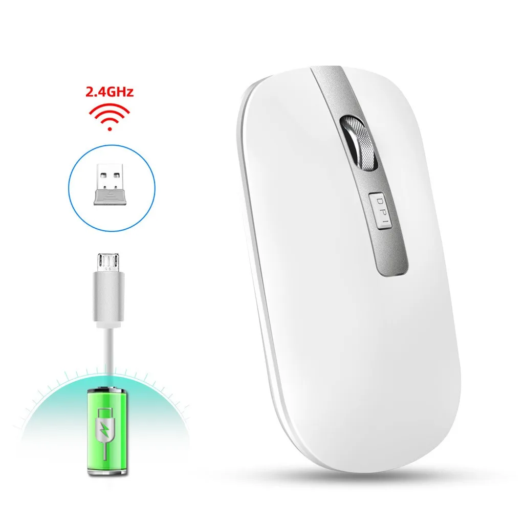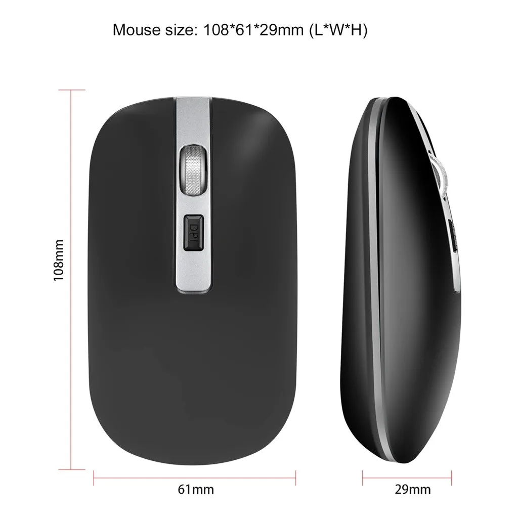 Перезаряжаемые 2,4 г Беспроводная металлическая Бесшумная оптическая мышь для ноутбука