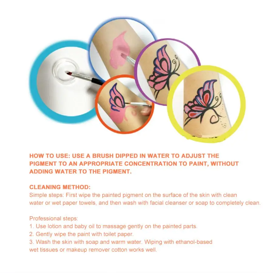 4. Подходит как для лица, так и для тела, водорастворимый пигмент, легко моется.