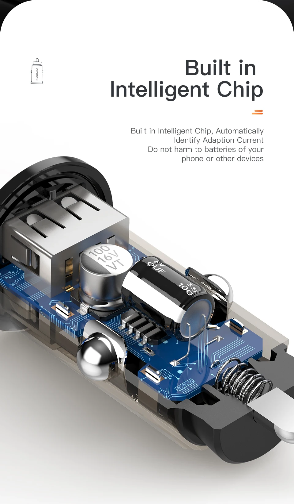 Встроенный интеллектуальный чип, автоматически определяет адаптивный ток Не вредите аккумуляторам вашего телефона или другим устройствам