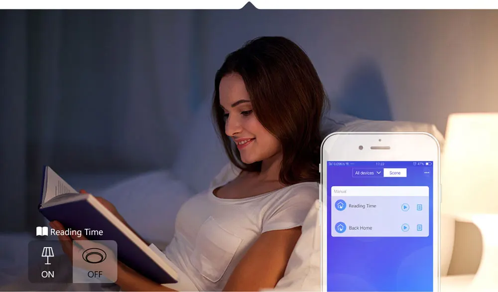 Создайте умные сцены, чтобы включить/выключить одно устройство или сгруппировать несколько устройств, чтобы управлять ими одним нажатием