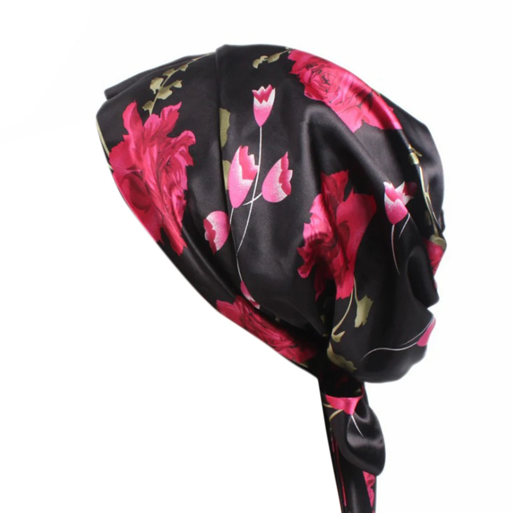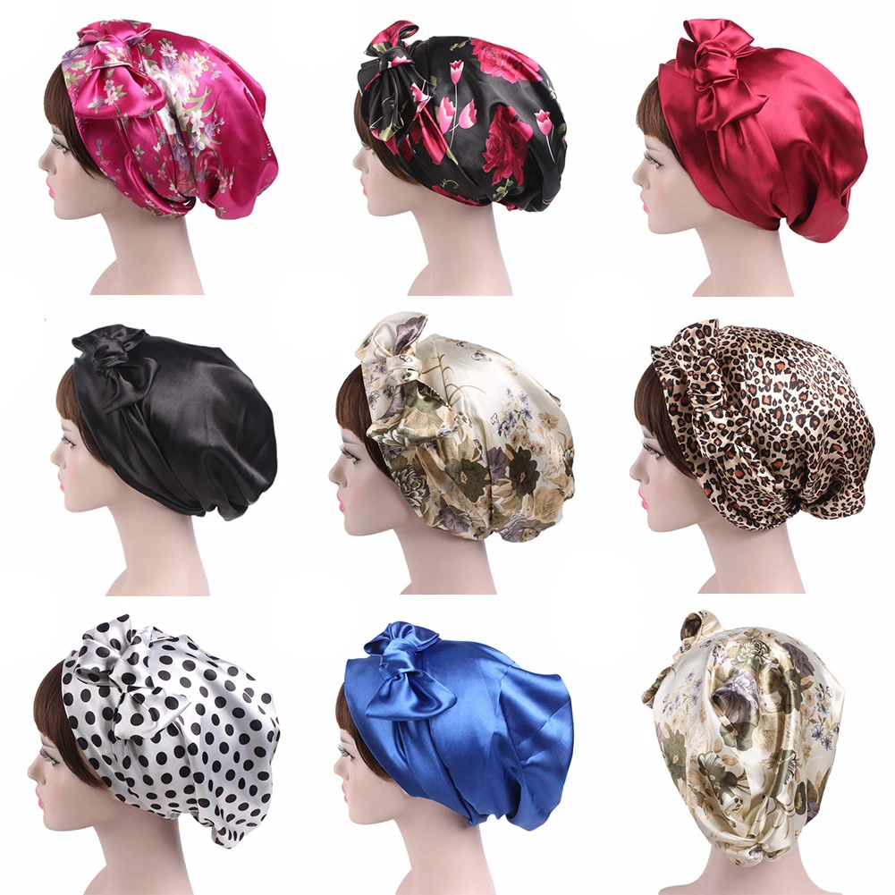 Атласная шапочка для сна с принтом DIY стримеры бант тюрбан шелковая Бандана кепка с длинным хвостом Кепка для химиотерапии