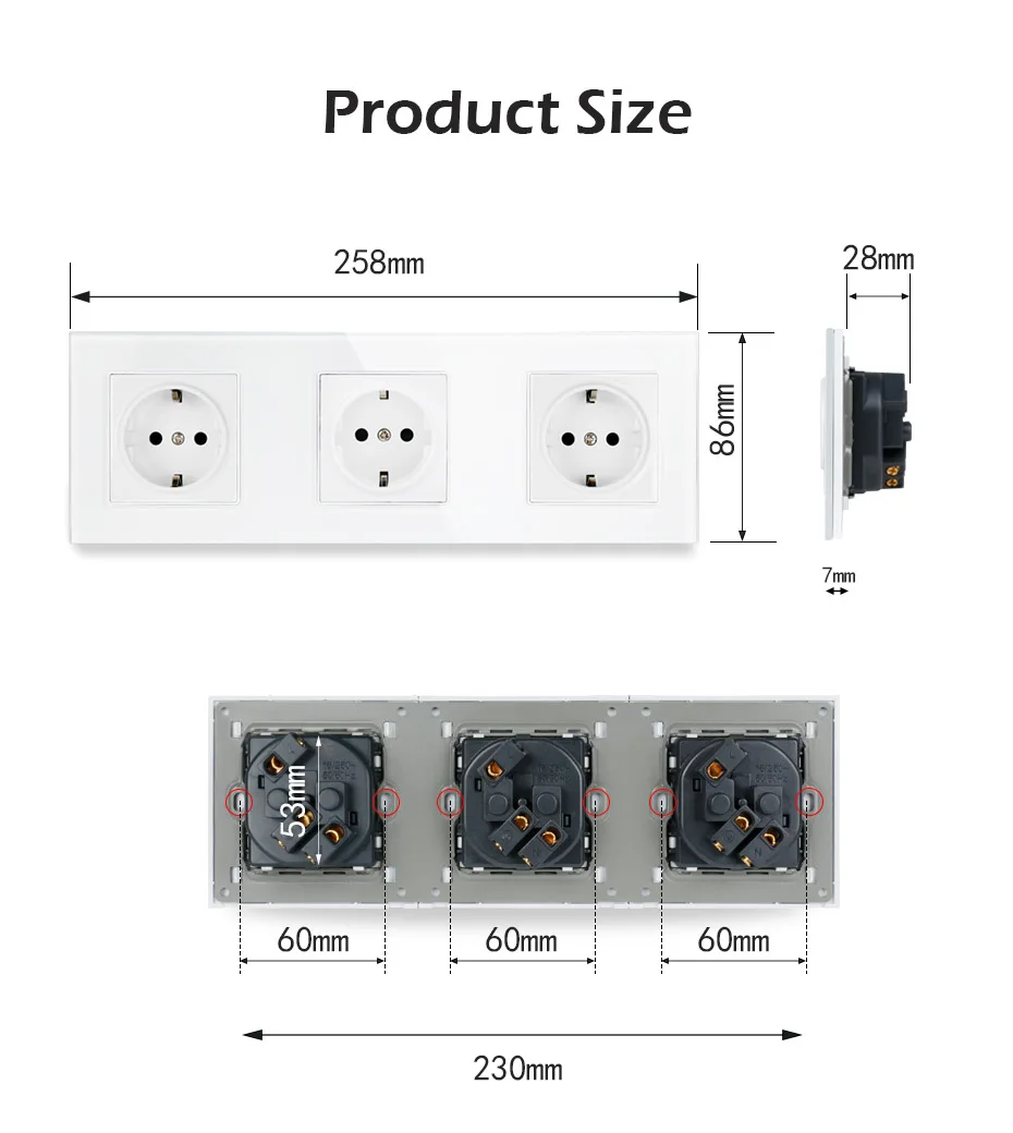 UNKAS стандарт ЕС серая Хрустальная стеклянная панель 3 банды розетка электрическая тройная розетка заземленная 16А 258*86 мм