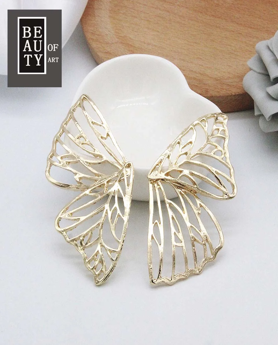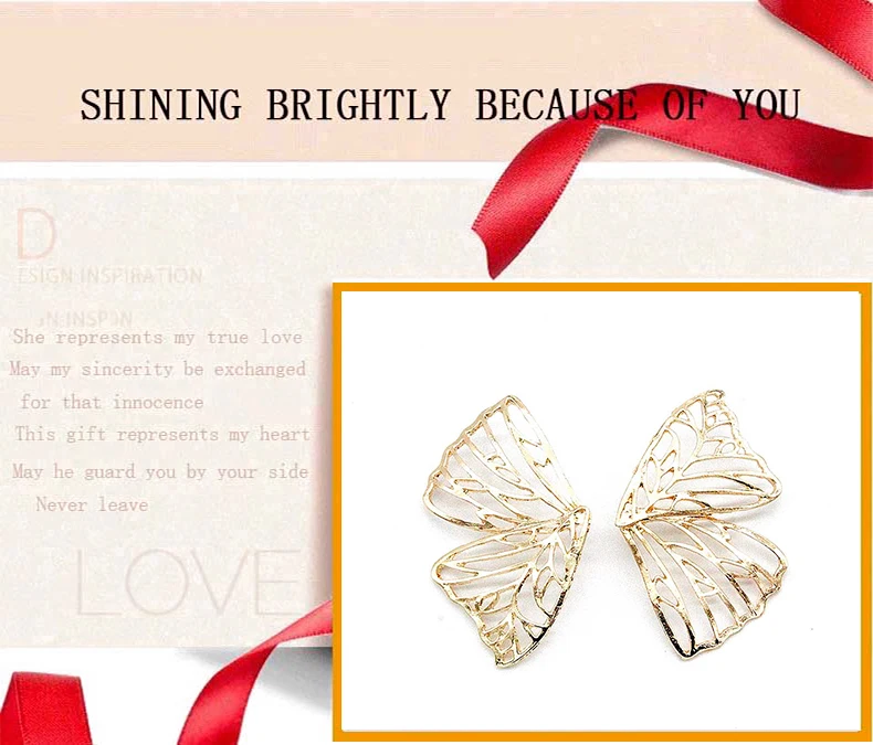Ажурные серьги-бабочки с воздушным охлаждением, сочетающиеся с золотом и серебром, пара красивых крыльев бабочки, обрезаемых на ушах, выглядит более чисто и красиво, дизайнер сказал, что это очень любимые сережки, она вам тоже понравится