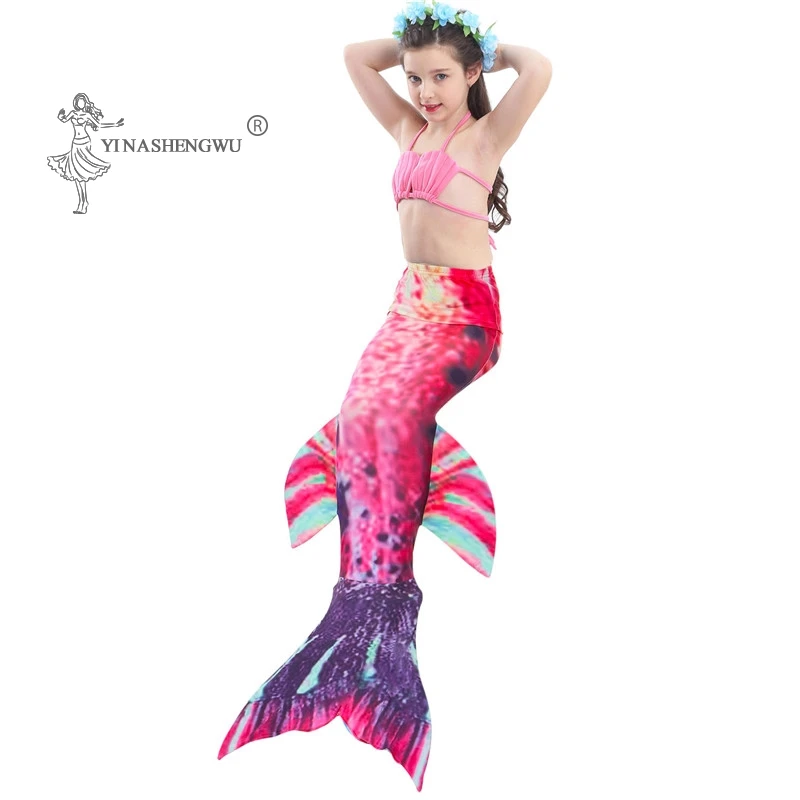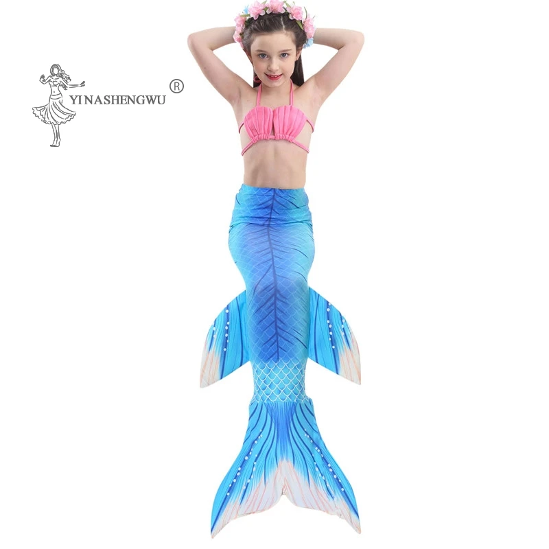 Карнавальный костюм для девочек Купальник, хвост русалки с моноластами, 4 шт. Флиппер детей Купальный костюм для плавания, одежда пляжное купальное бикини наборы для ухода за кожей