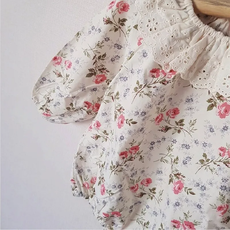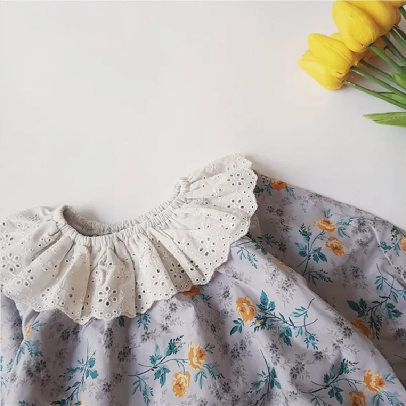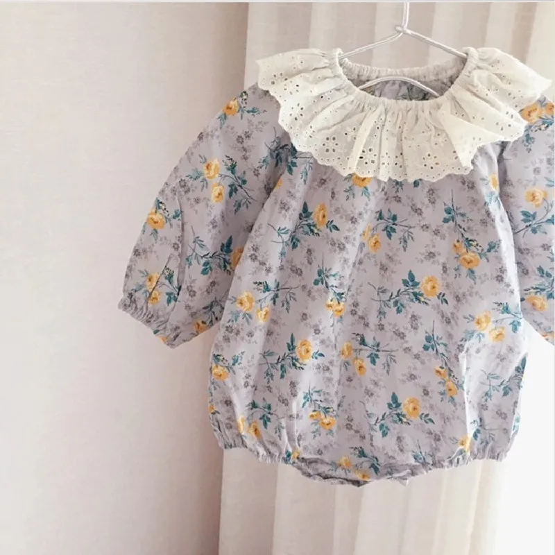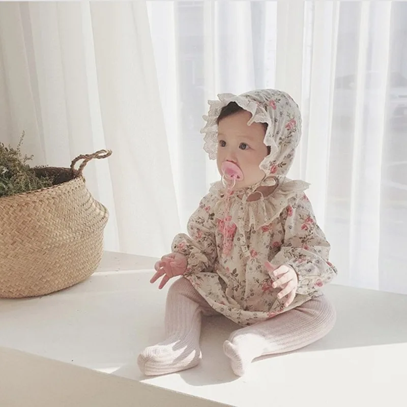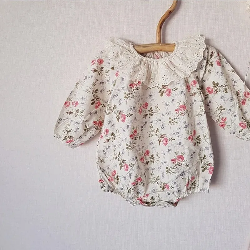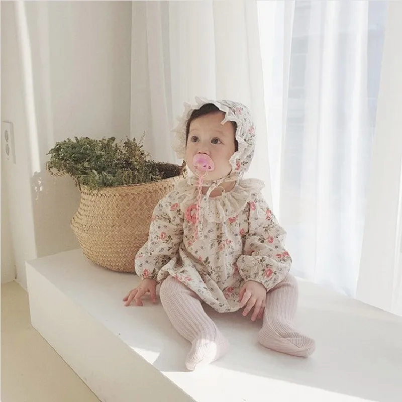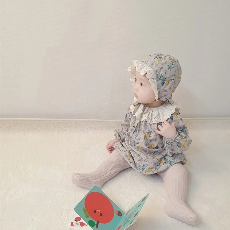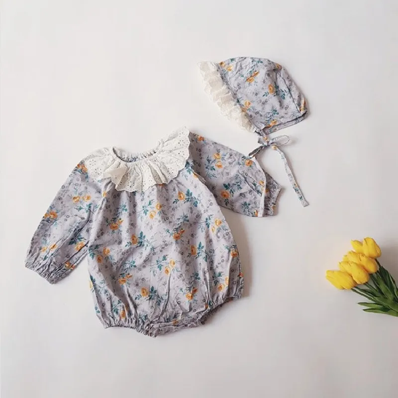 Одежда для маленьких девочек Комбинезон с кружевным воротником для новорожденных, летняя одежда с цветочным рисунком для маленьких девочек Одежда для маленьких девочек Комбинезон для малышей, комбинезон с шапочкой