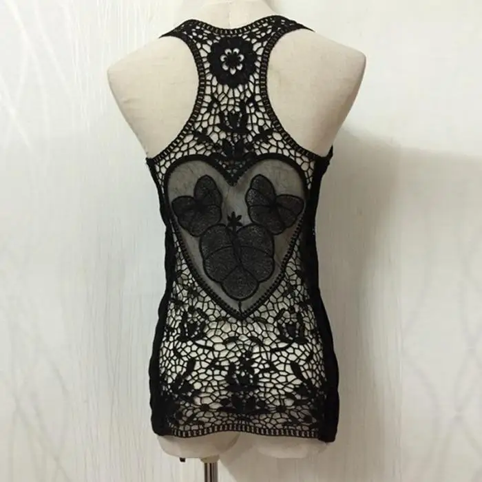 Тип одежды: сексуальный летний женский топ на бретелях, майка, футболка с кружевом, вязанные крючком топы без рукавов с открытой спиной