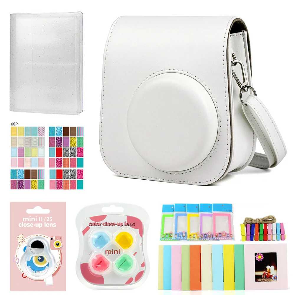 Комплект аксессуаров подходит для Fujifilm Instax Mini 11. Разнообразие продукции, удовлетворяет ваши различные потребности. Идеально подходит в качестве подарка, также выгодна покупка. Простой в использовании, необычный и веселый. Хорошее украшение, чтобы сохранить ваши фотографии, хорошо подходит для украшения ваших фильмов Камера не прилагаются Что вы получаете: 1 сумка Camea-специально разработанная для камеры Instax mini 11. Современный и элегантный внешний вид, принесет вам лучший опыт. 1 х близкое зеркало для селфи ярких цветов, больше, чем оригинальная Область обзора, больший угол, и камера отличается от других 10x красочные бумажные настенные рамки позволяют показать ваши красивые фотографии и поделиться прекрасным с друзьями и близкими 60x шт различных красочных наклеек-скрасьте ваши фотографии, хорошее украшение, чтобы сохранить ваши фотографии Fujifilm. 5 x Цветная Пластиковая вертикальная фоторамка, вы можете отображать фотографии на рабочем столе и в других местах. 1 x изысканный фотоальбом, вы можете сохранить ваши фотографии лучше, и можете смотреть в любое время.