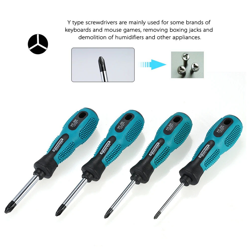 Отвертки типа Y в основном используются для некоторых брендов клавиатур и игр с мышью, удаляя боксерские домкраты и снос увлажнителей и других приборов.