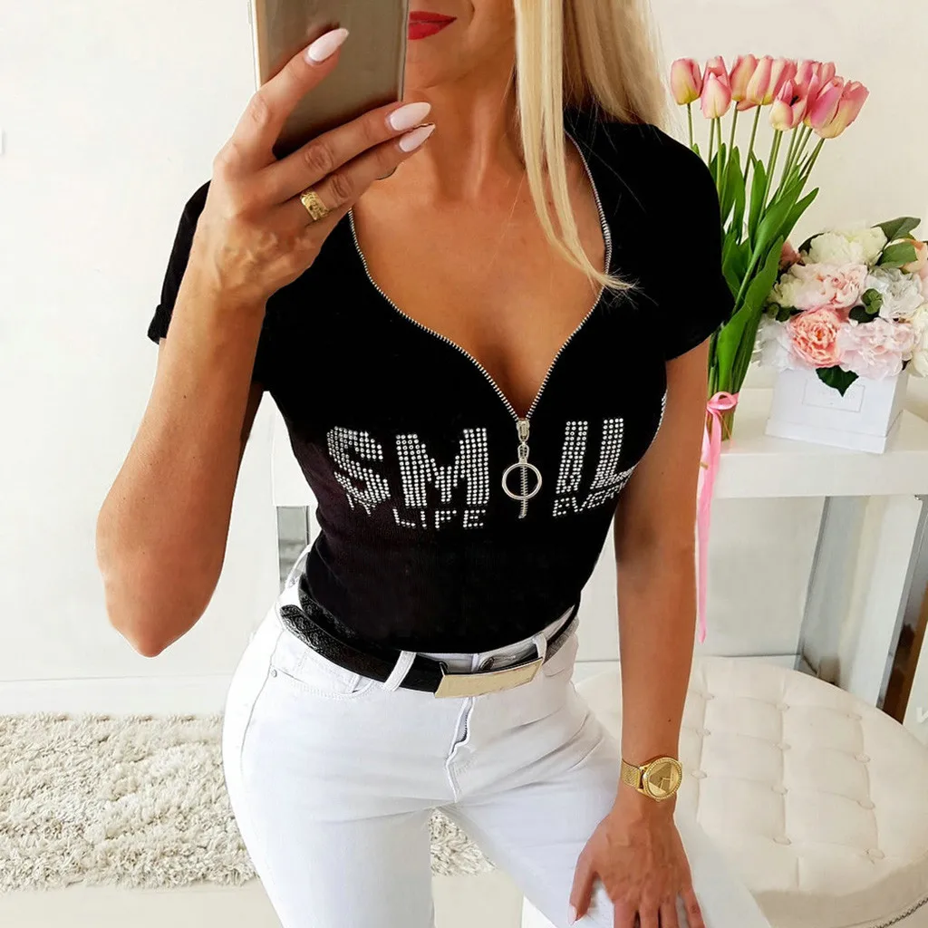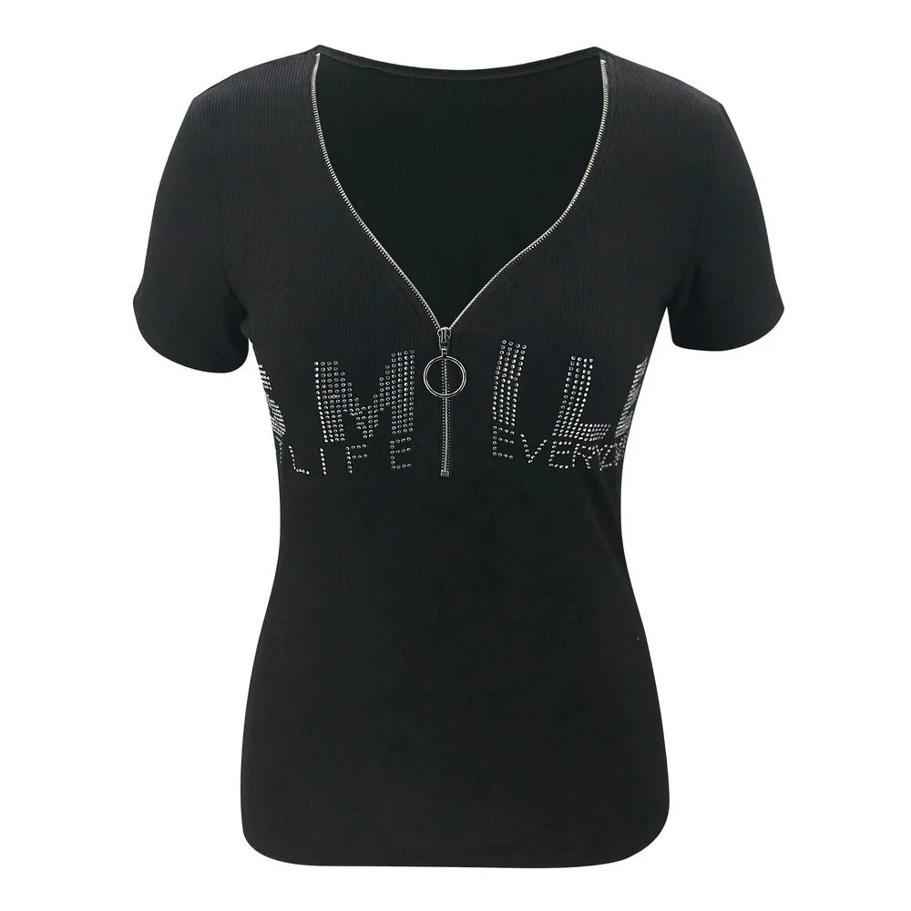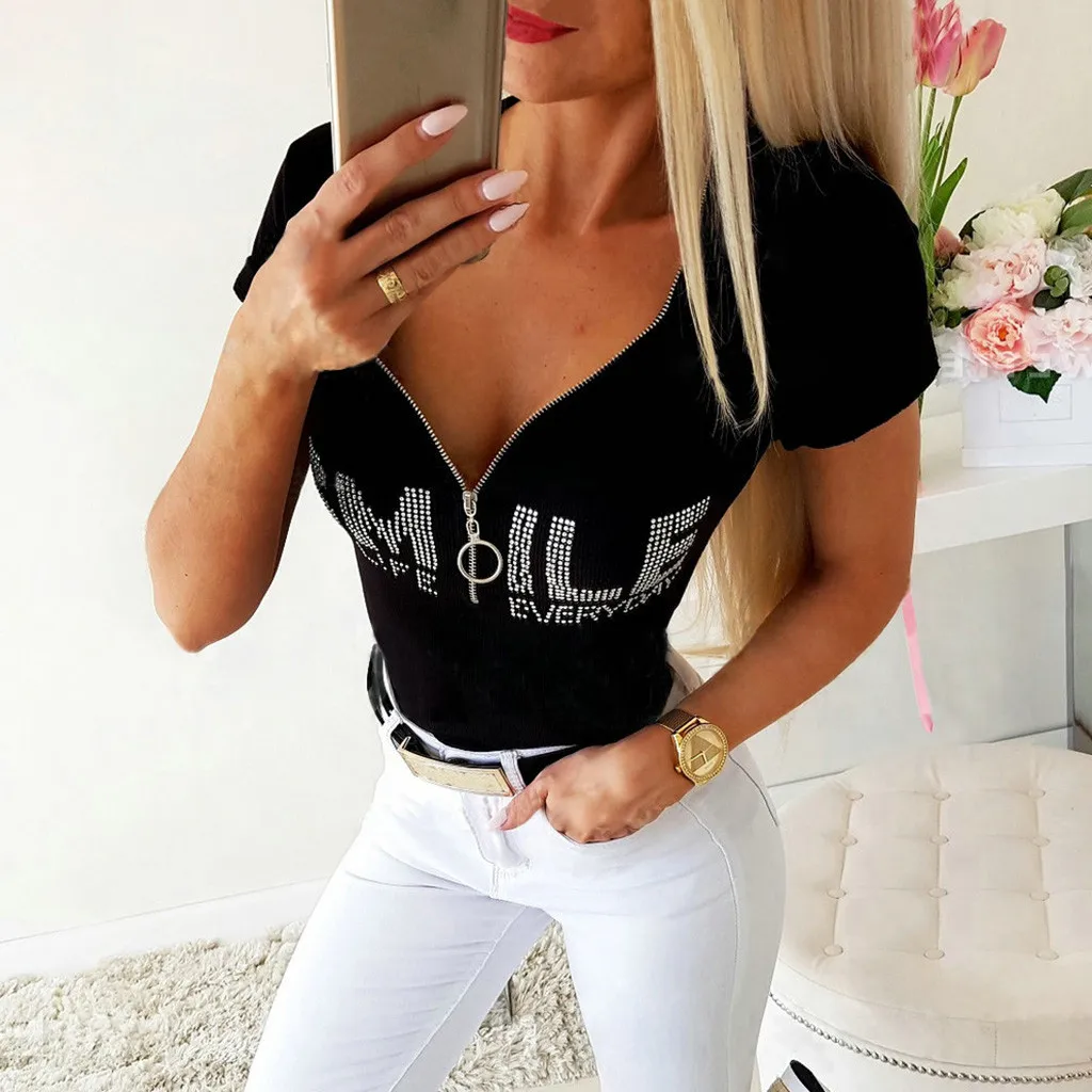 Для женщин V Повседневная Блузка с коротким рукавом и принтом; Футболка
