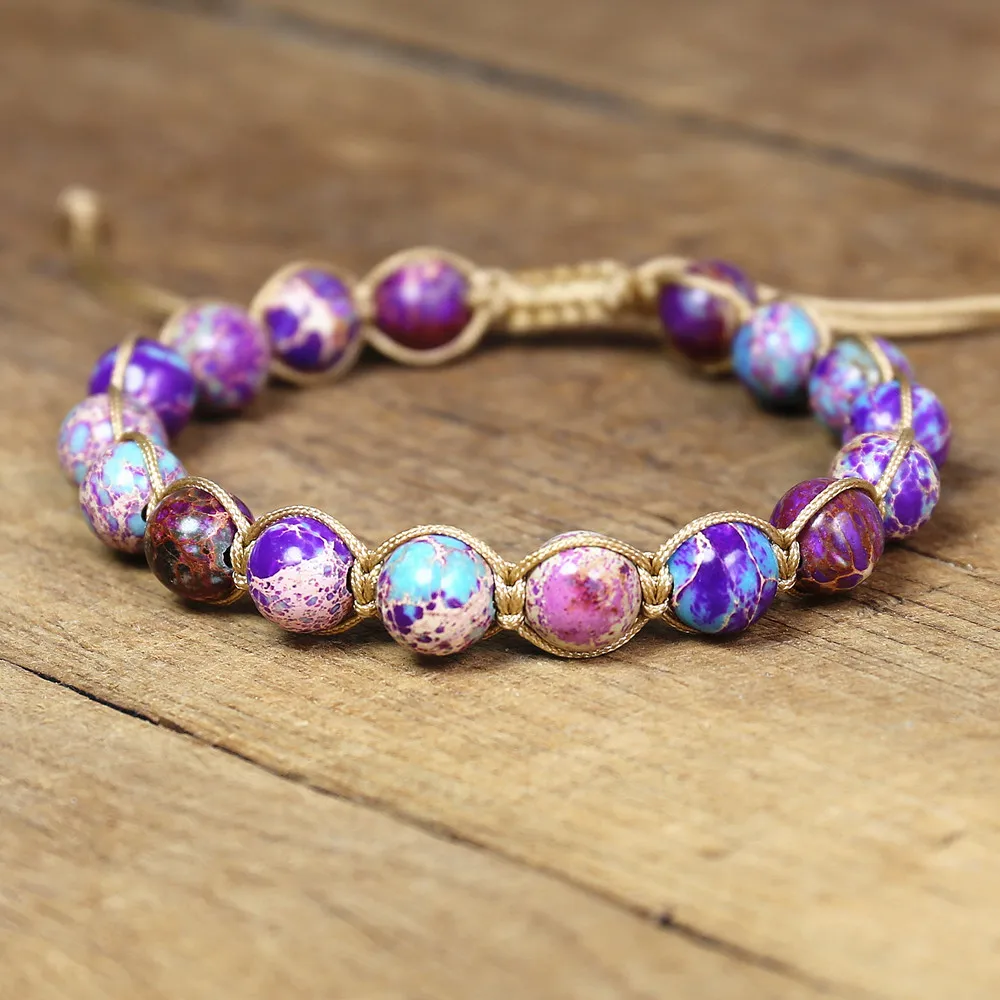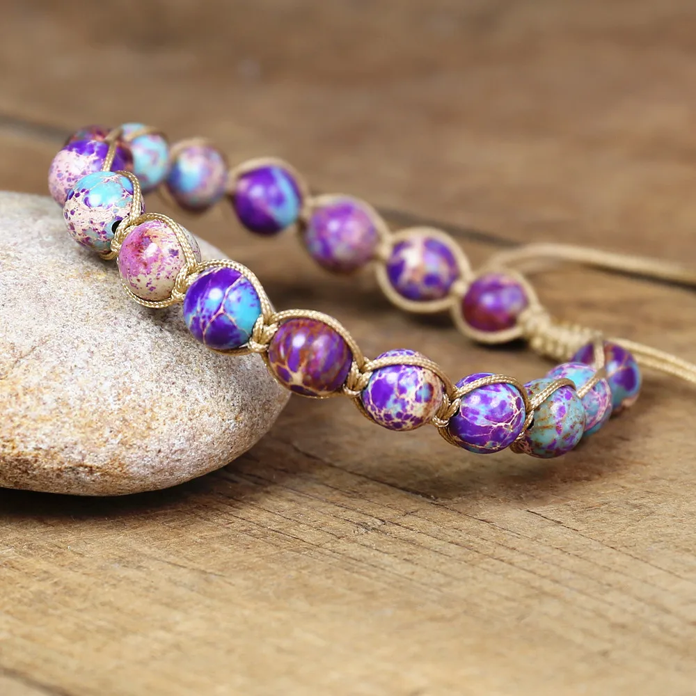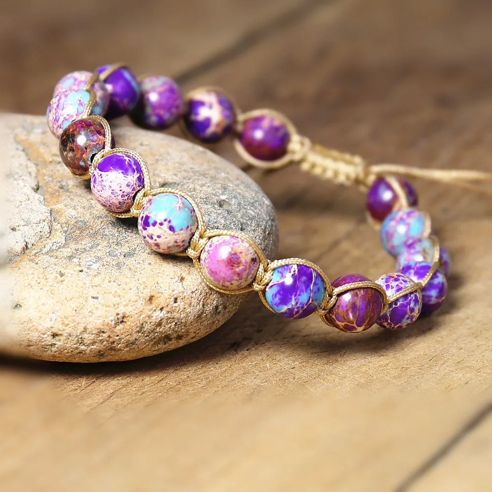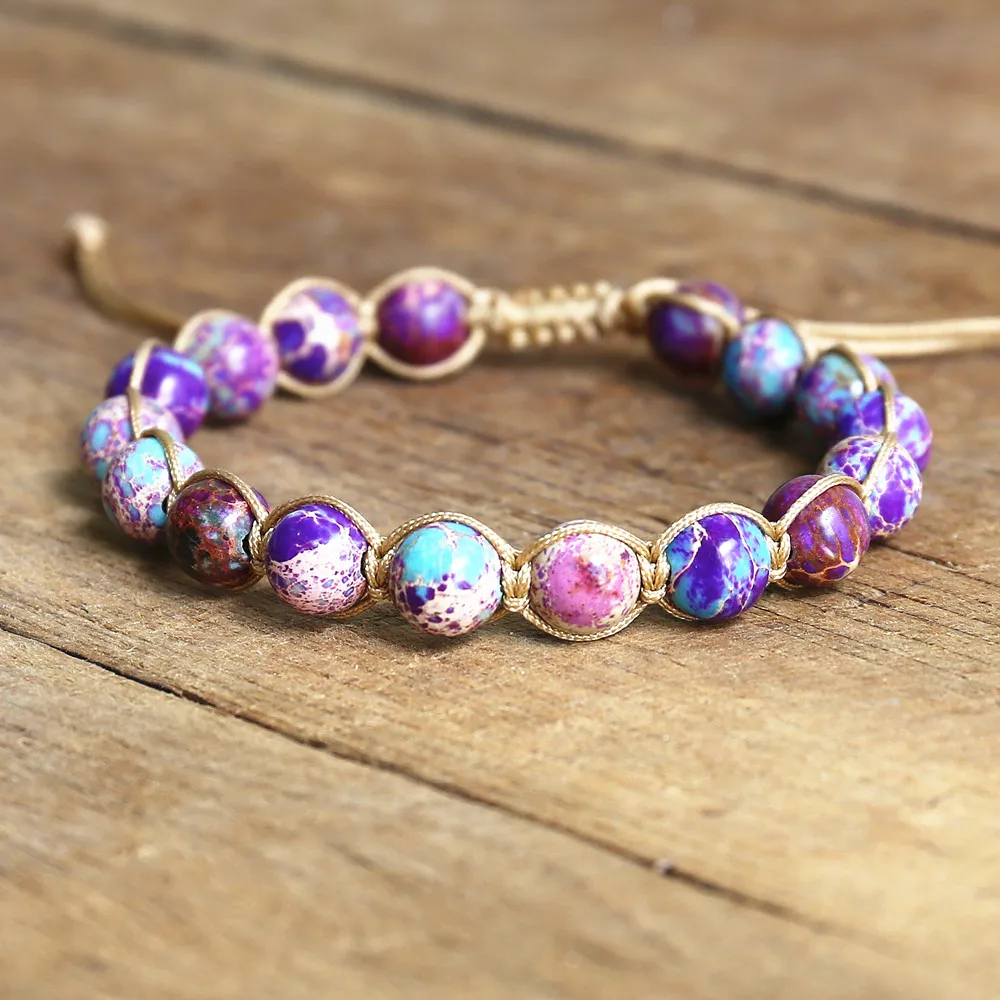 Император камень трубки бусины чакра кожаный браслет обруча и браслет для женщин мужчин Богемия Йога браслет с подвесками ручная работа ювелирные изделия подарок