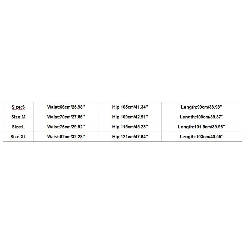 Размер: S обхват талии: 66 см/25,98 дюйма обхват бедер: 105 см/41,34 дюйма Длина: 99 см/38,98 дюйма Размер: M обхват талии: 70 см/27,56 дюйма обхват бедер: 109 см/42,91 дюйма Длина: 100 см/39,37 дюйма Размер: L обхват талии: 76 см/29,92 дюйма обхват бедер: 115 см/45,28 дюйма Длина: 101,5 см/39,96 дюйма Размер: XL обхват талии: 82 см/32,28 дюйма обхват бедер: 121 см/47,64 дюйма длина: 103 см/40,55 дюйма