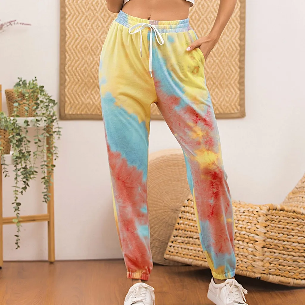 Женские удобные прямые свободные брюки с широкими штанинами и карманом; Спортивные брюки с градиентным принтом; Брюки для женщин; Мода 2020