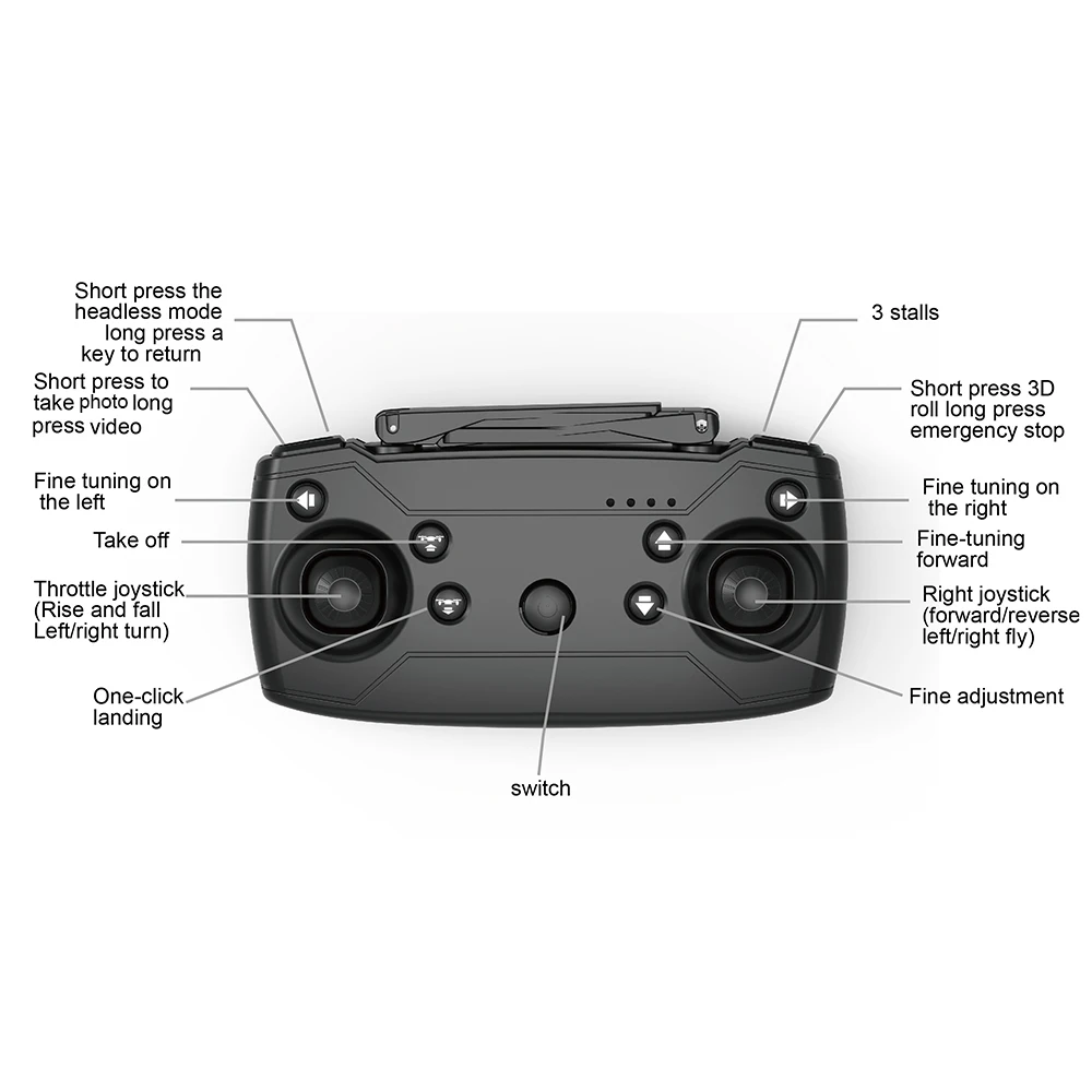 Функция: вперед/назад, вверх/вниз, влево/вправо-летит, влево/вправо поворачивается, парит, один ключ взлета/посадки, Безголовый режим, удержание высоты, один ключ возврата, управление Wifi, фото/видео Управление Wi-Fi: для реализации передачи видео в реальном времени путем подключения мобильного приложения к Wi-Fi дрону. Снятие/посадка одной кнопкой: делает работу более удобной. С одной клавишей функция автоматического возврата: самолет может легко найти путь домой. 0.3MP или 2.0MP Камера: может записывать и записывать каждый красивый и незабываемый момент. Удержание высоты: обеспечивает удобную работу и стабильный полет, особенно для начинающих. Безголовый режим: полное решение проблем пилота с потерей ориентации.