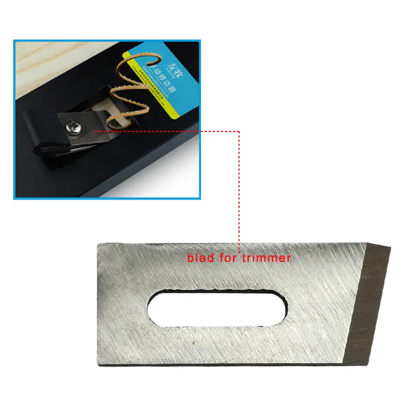 Лезвия являются обратимыми, поэтому, когда режущее лезвие становится тусклым, просто меняйте места с помощью наковальни. Конца триммер режет, деревообрабатывающее кантовальное или шпон до 0,5 мм толщиной, при этом максимальная ширина реза 54 мм шириной.