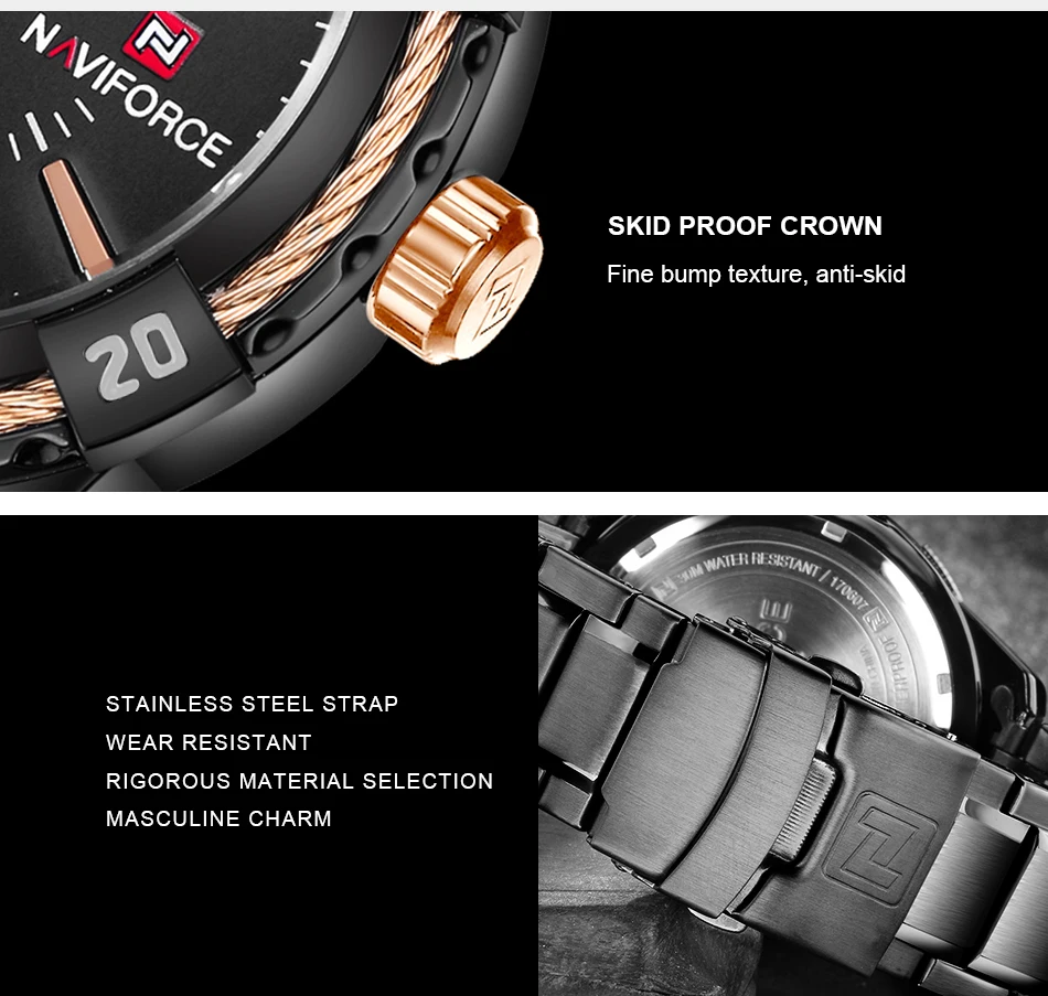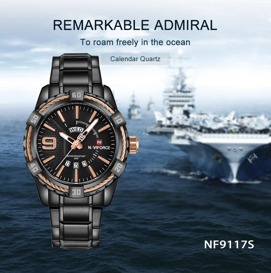 Модель: NAVIFORCE NF9117s Механизм: кварцевый механизм Пол: мужчин и мужчин Стиль: Модный, Повседневный, Спортивный Материал циферблата: закалённое минеральное стекло Материал ремешка: ремешок из нержавеющей стали Тип застежки: складная застежка с безопасной Диаметр циферблата: 43,5 мм Чехол Толщина: 15,5 мм Длина ремешка: 240 мм Ширина ремешка: 22 мм Вес изделия: 170 г Характеристики: Водонепроницаемость 30 м, отображение даты недели в два раза Товары включают: оригинальные часы * 1, гарантийный талон * 1, Инструкция * 1 Мы поддерживаем прямую доставку и все