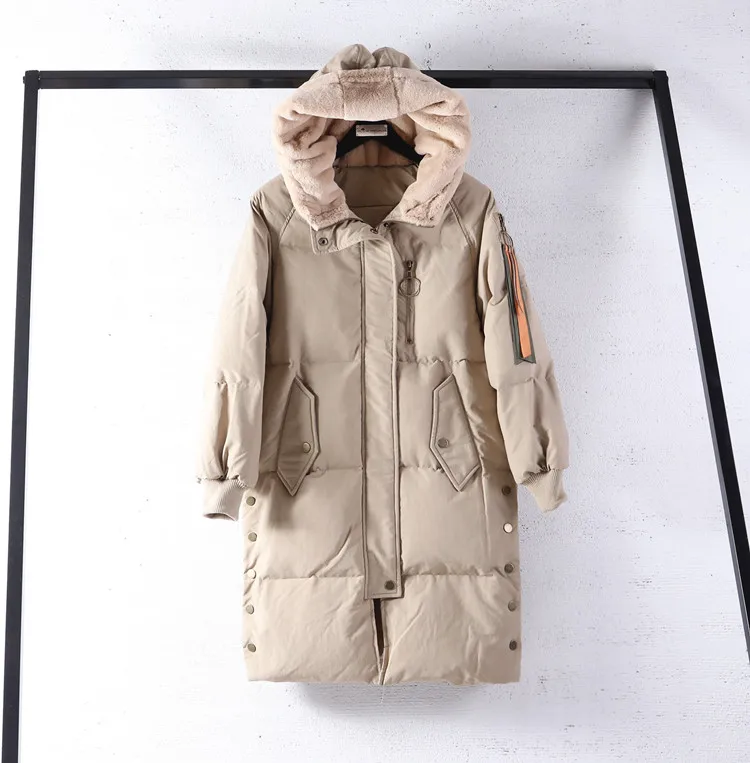 Большой натуральный мех енота, новинка 2018, зимнее пальто для женщин, длинная толстая теплая парка с капюшоном, белый пуховик на утином пуху, женское пуховое пальто
