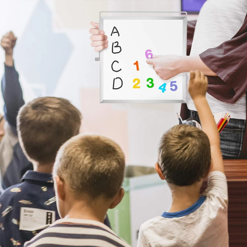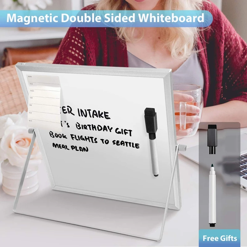 Двухсторонняя белая доска с эффектом сухого стирания: Двусторонняя, отлично подходит для дома, в классе, в офисе. Люди могут использовать его, чтобы оставить заметку или напоминание, для презентаций, мозгового штурма, обучения, а также для детей, которые любят рисовать, а затем стирают.