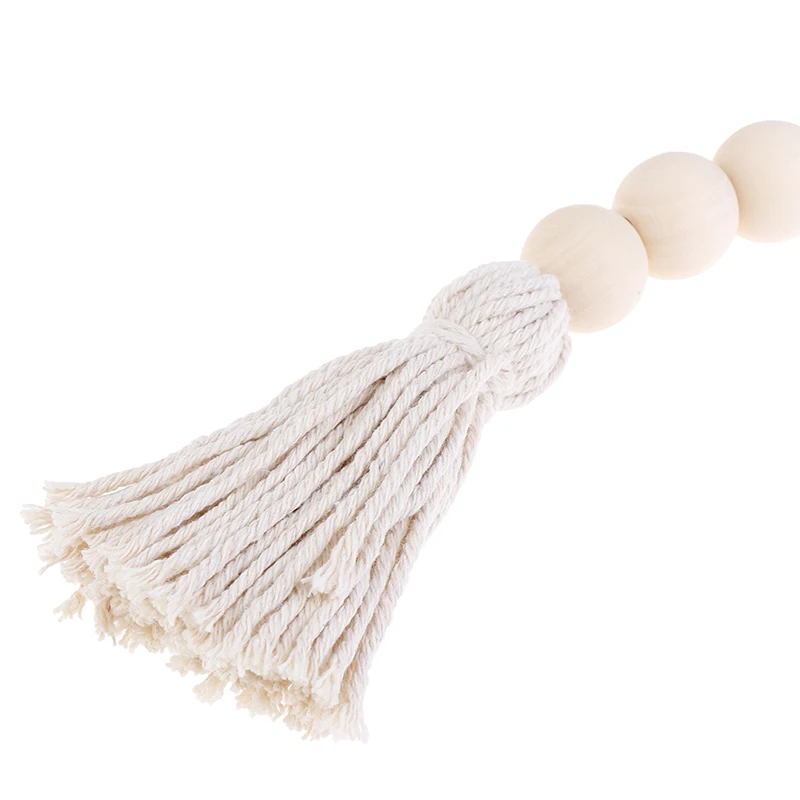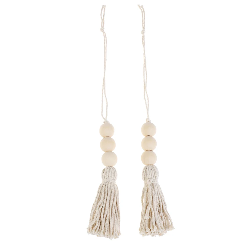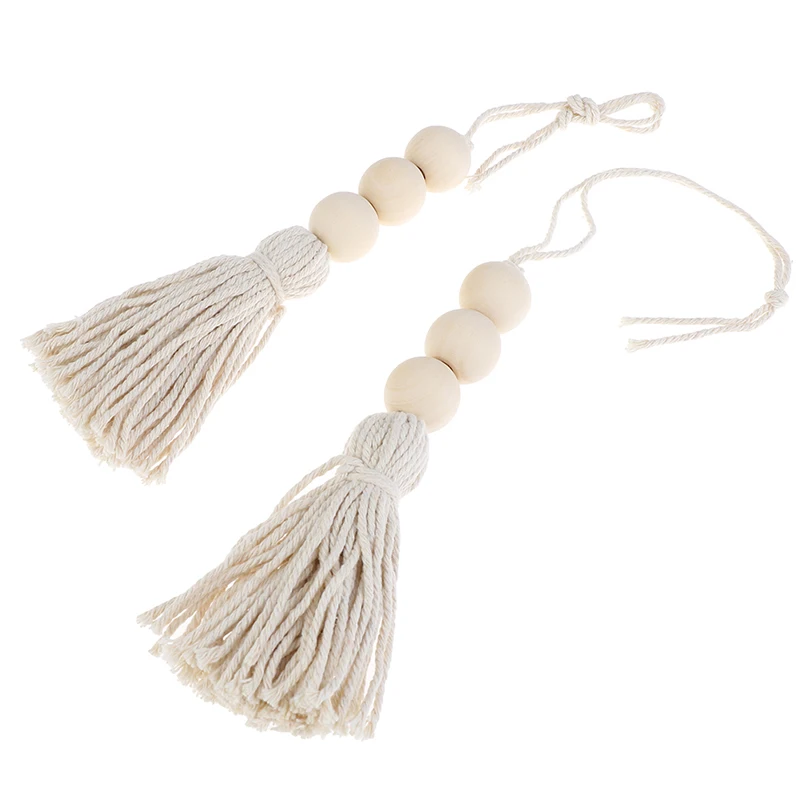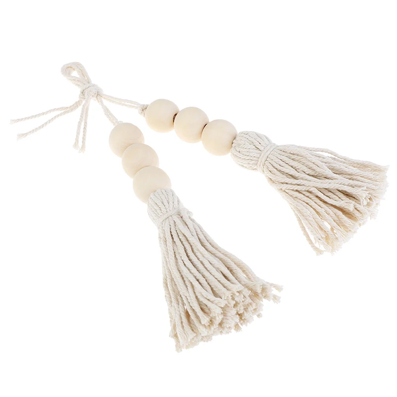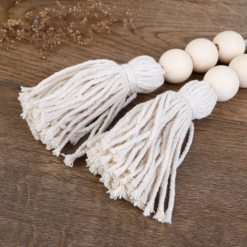 2Pcs Tassle Farmhouse Beads Natural Wood Bead Garland Kids Baby Nursery Room Decor Rustic Wedding Vase Ornament
