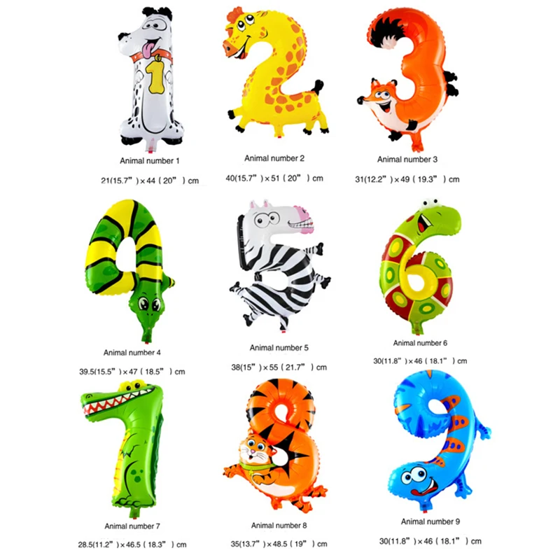 16 дюймов мультфильм Животные числом 0-9 Фольга воздушные шары Цифровой шар