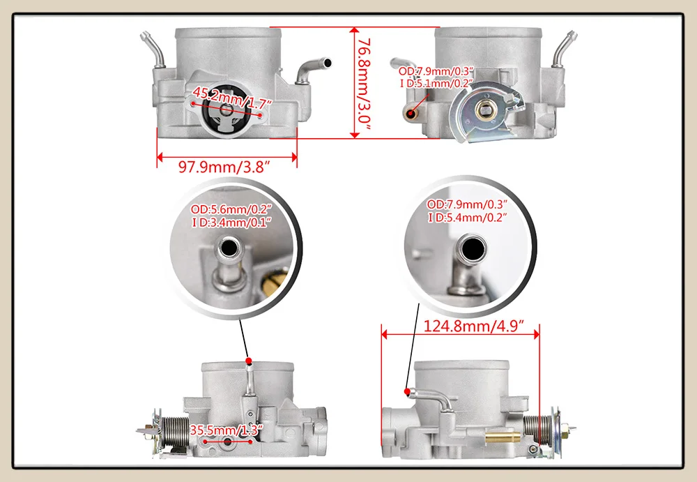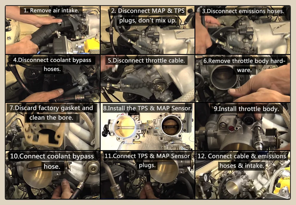 Примечание: Для некоторых впускных коллекторов потребуется согласование портов, чтобы впускной коллектор соответствовал размеру корпуса дроссельной заслонки!