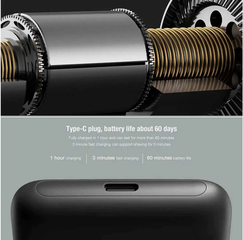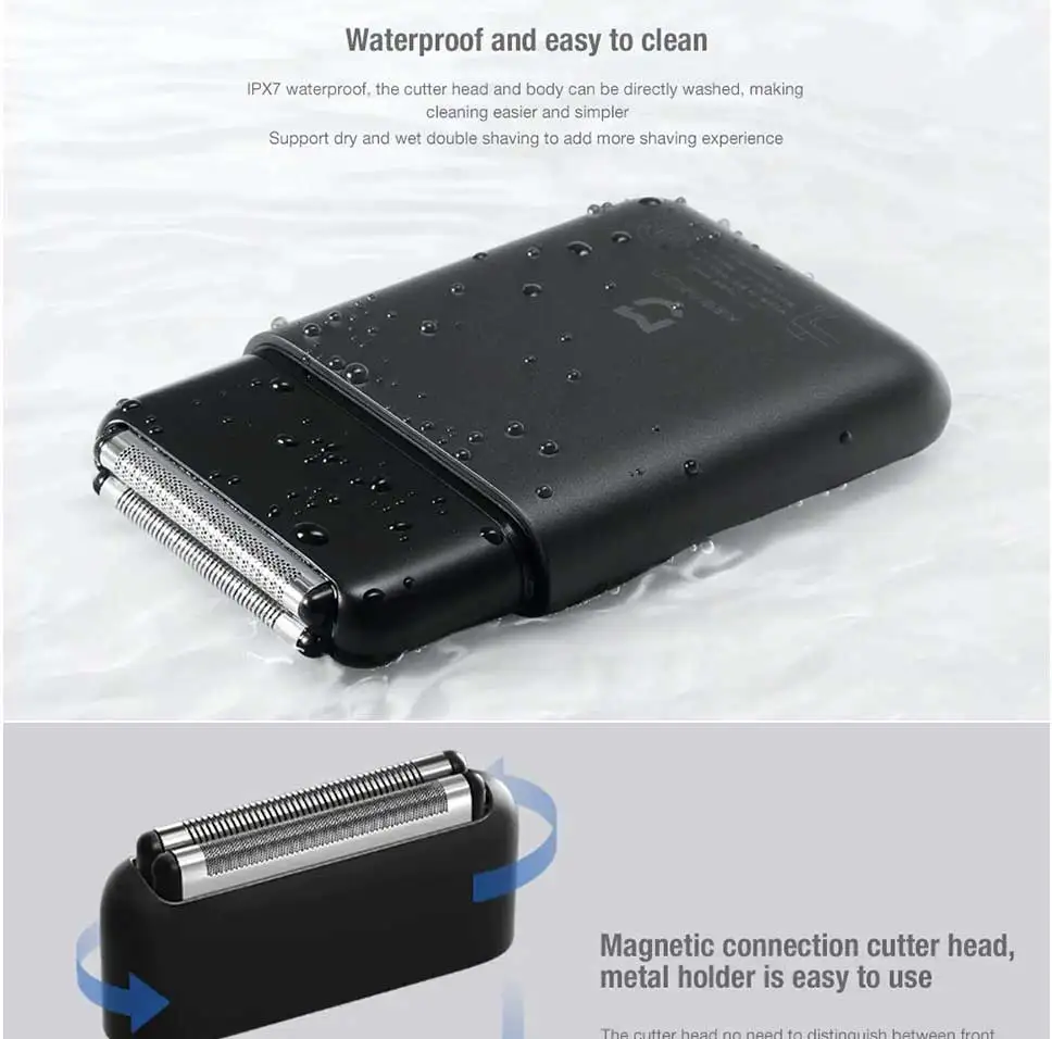 IPX7 водонепроницаемое, влажное и сухое двойное Бритье