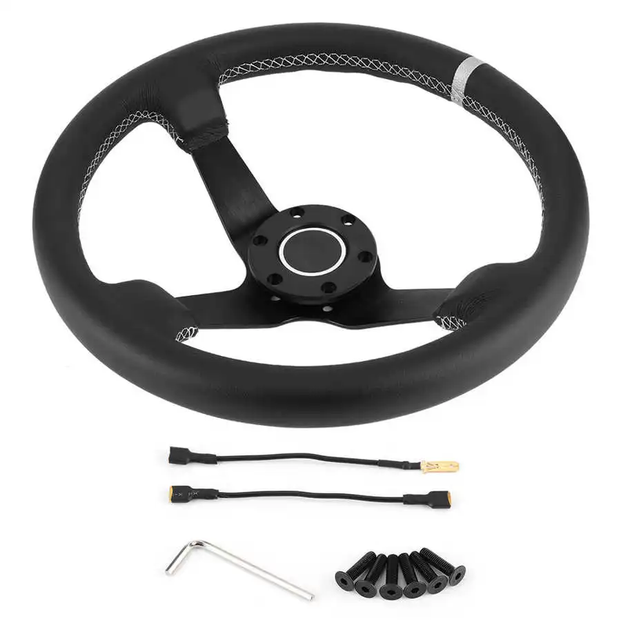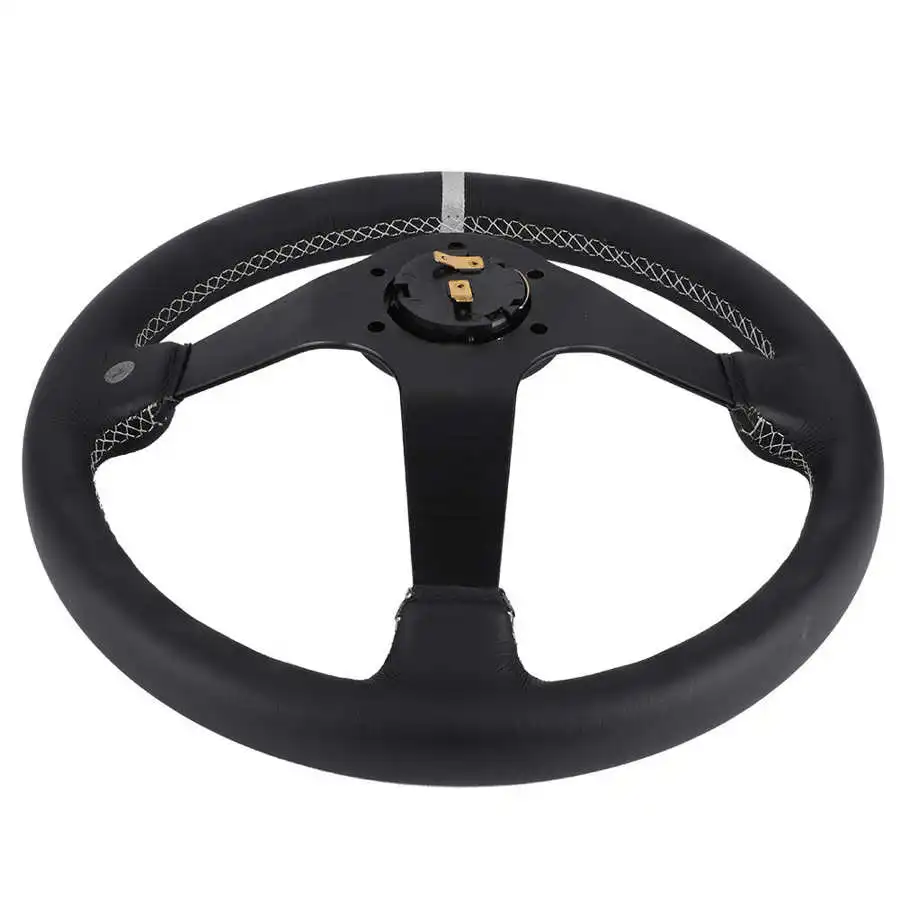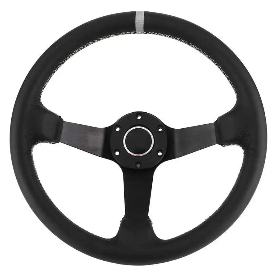 350 мм/14in 6-болт глубокое блюдо черный кожаный гоночный руль W/рог