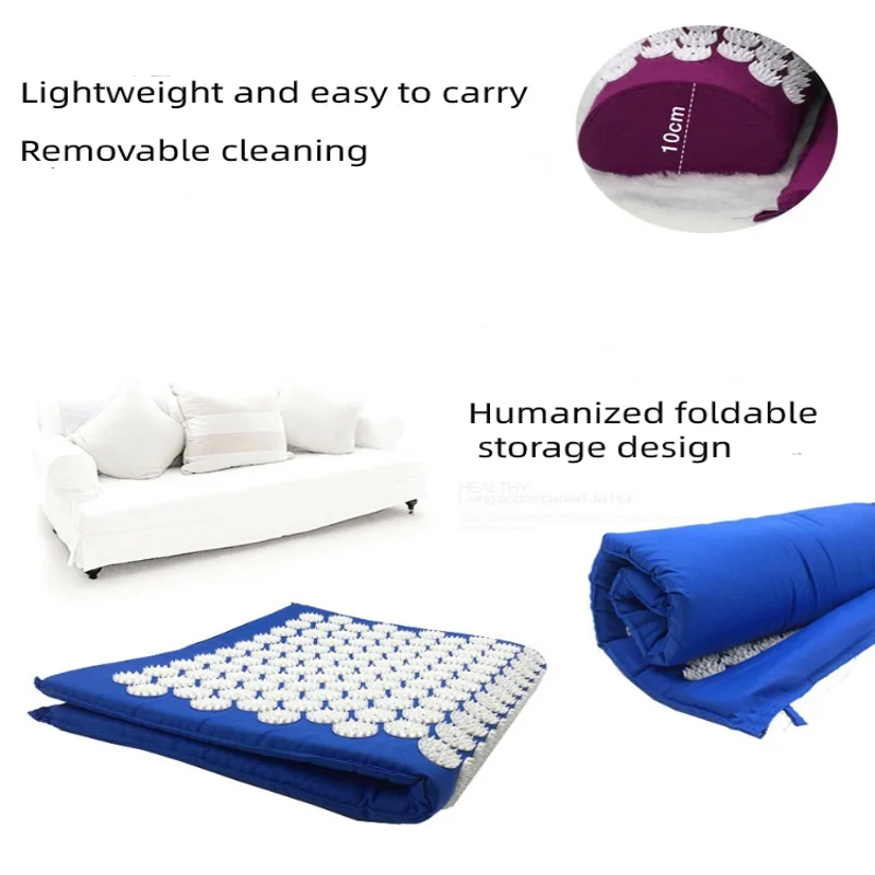 Материал: губка + хлопок + шип ABS пластик + сумка для хранения ткани Оксфорд Размер изделия: подушка: 66*40*2 см подушка: 38*15*10 см Применение: спа, дом, офис и т. Д. Цвет: зеленый, синий, фиолетовый, черный Стимулирует акупунктурные точки и уменьшает мышечное напряжение. Идеальный инструмент для вас, чтобы насладиться всеми преимуществами массажа шиацу дома и полностью расслабиться. Вам просто нужно положить его на кровать или пол. Простота в использовании Легкий и удобный для переноски и хранения