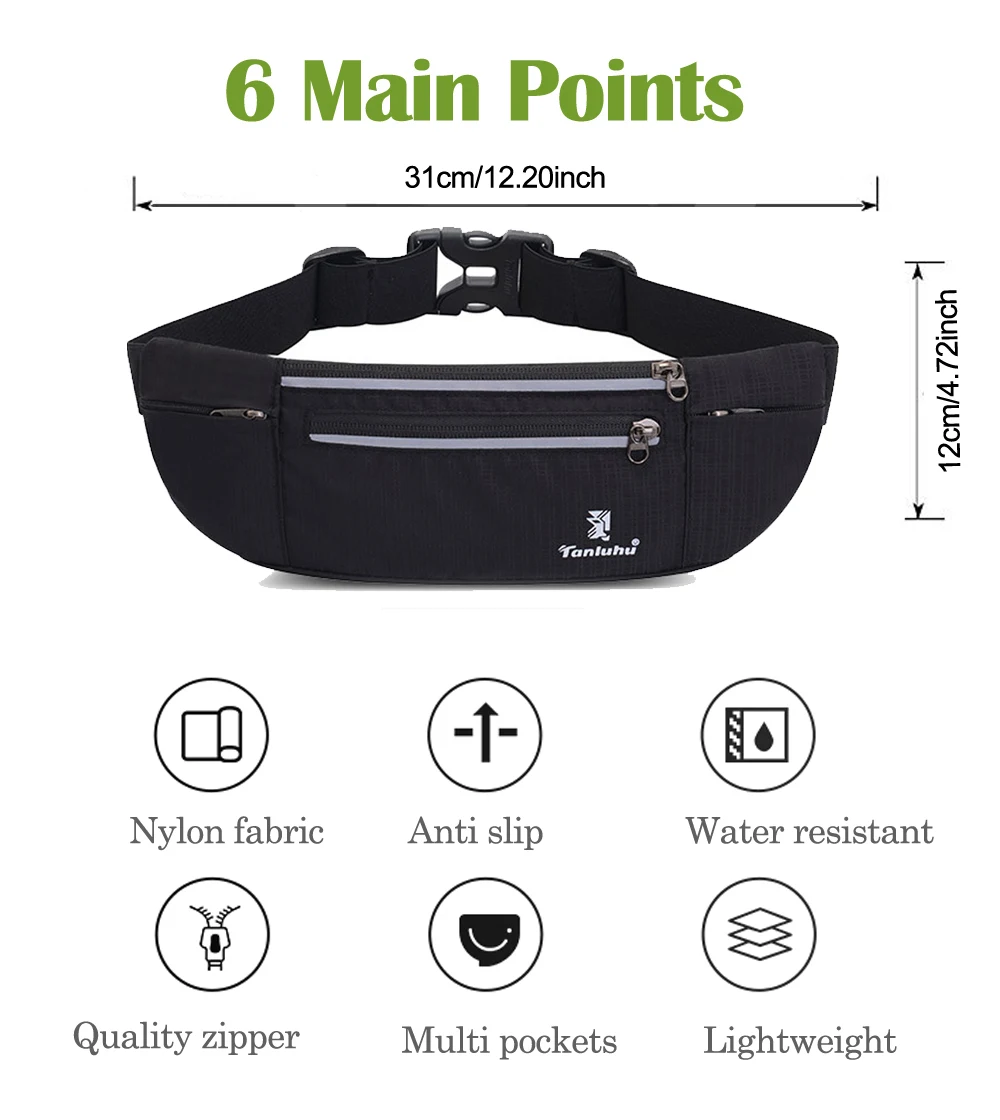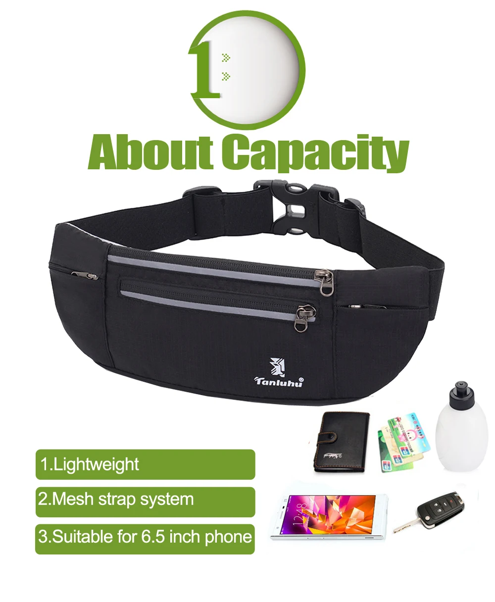 Профессиональный дизайн: 1. Регулируемый ремешок, который удобно подходит для талии от 21 до 40 дюймов. 2. Один дополнительный карман для переноски бутылки с водой и ремень над карманом можно закрепить бутылку с водой. 3. Вы заметны ночью из-за ремней отражателя, напечатанных на поясе.