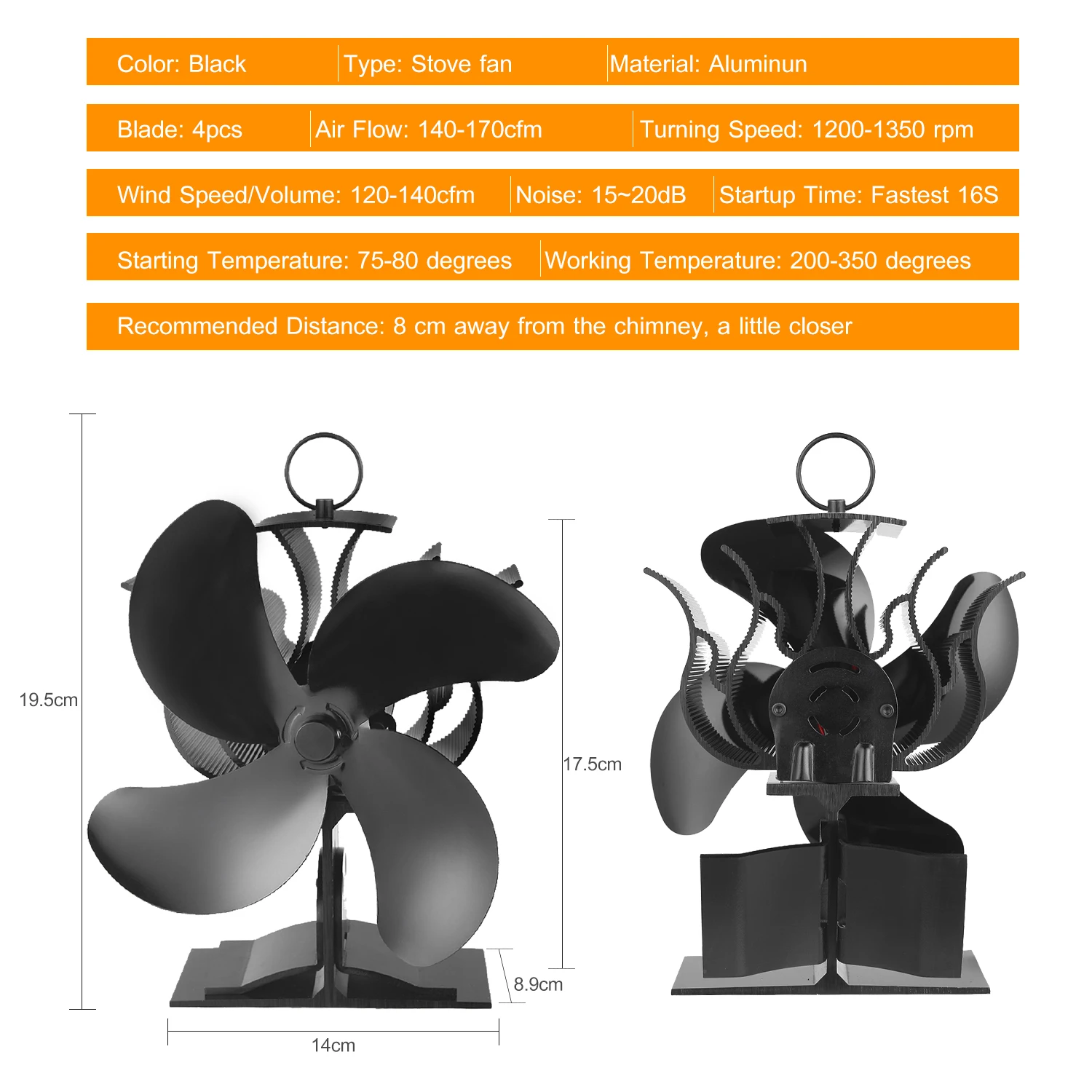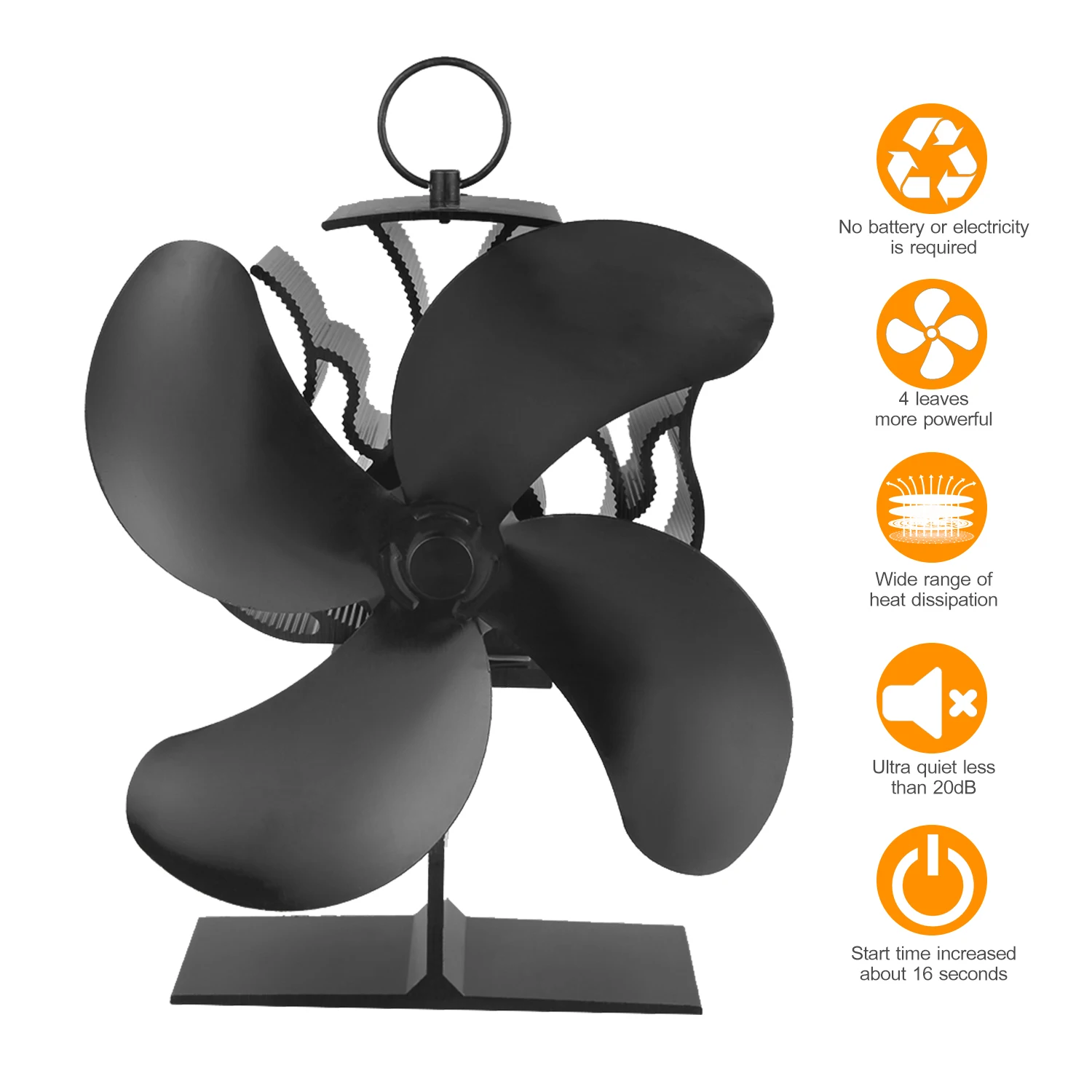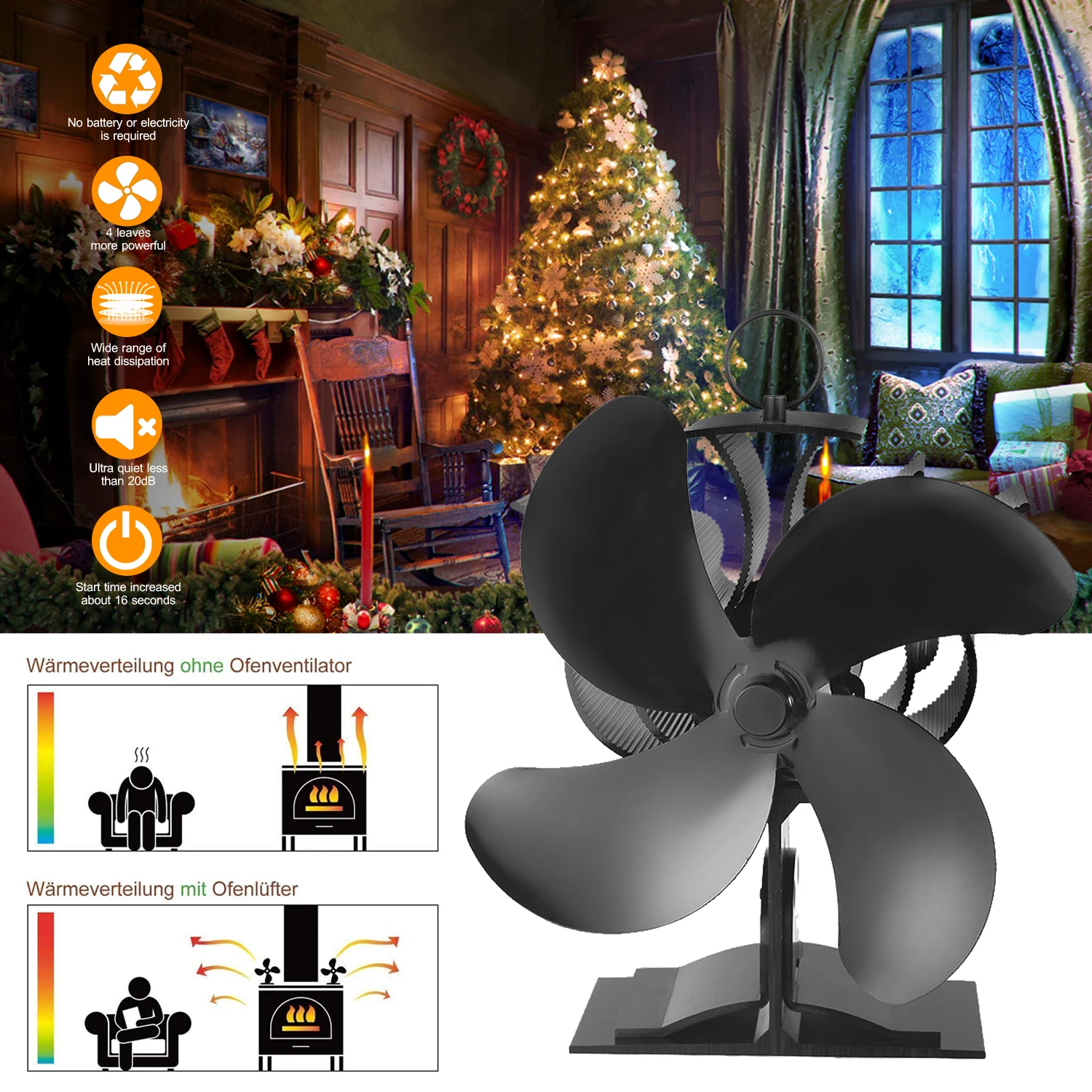 Экологичная и бесшумная работа--- Вентилятор печи питается от тепла вашего камина или дровяной печи, никаких батарей или электричества не требуется. Более жаркая печь, чем быстрее вентилятор печи вращается. Лопасти являются единственной подвижной частью, и ее рабочий шум ниже 20 дБ, тихий, как дыхание.