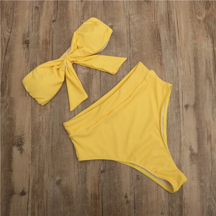 Женский однотонный набор бикини c бантом, бразильский купальник с высокой талией, женский купальный костюм пуш-ап, купальный костюм, пляжная одежда, 5 цветов