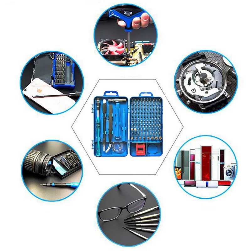 2. Все-в-одном дизайн: 110 в 1 Набор прецизионных отверток включает в себя больше инструментов, все необходимые инструменты для широкого спектра работ, удовлетворяет ваши различные потребности.