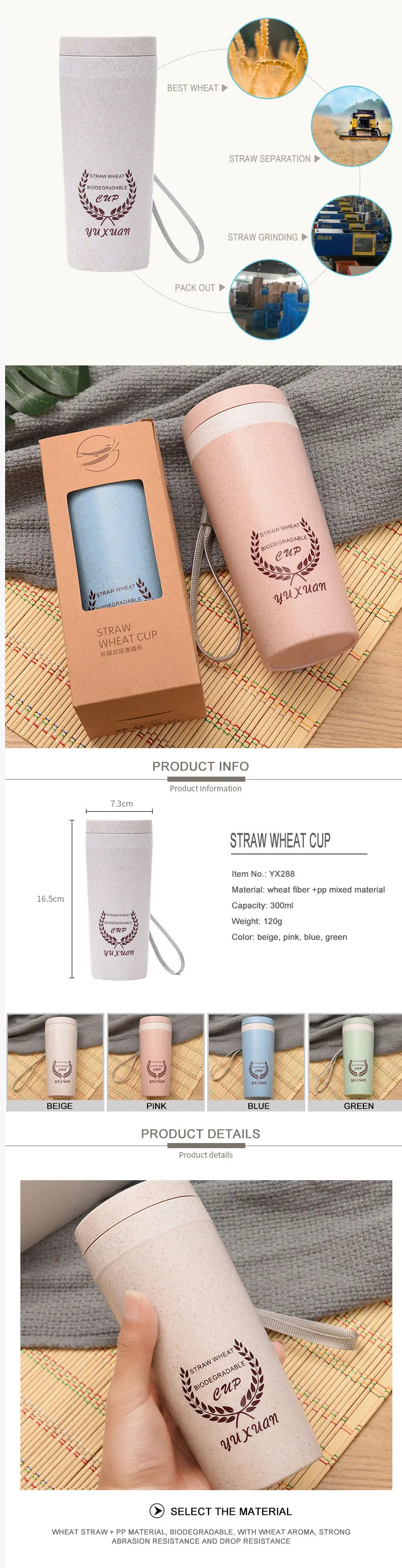 Наименование: двухслойная чашка с ароматом пшеницы с защитой окружающей среды Цвет: бежевый, синий, розовый, зеленый Материал: пшеничное волокно + полипропиленовый пластик Емкость: 300 мл Характеристики изделия: 7,3*16,5 см