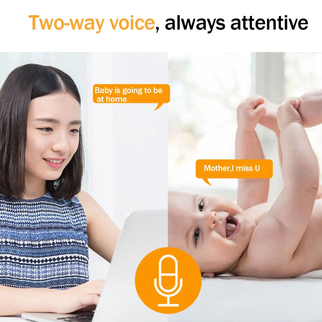 1. Двухстороннее аудио: Интерком в реальном времени, встроенный микрофон и динамик, мгновенно делитесь чудесными моментами в вашей жизни.