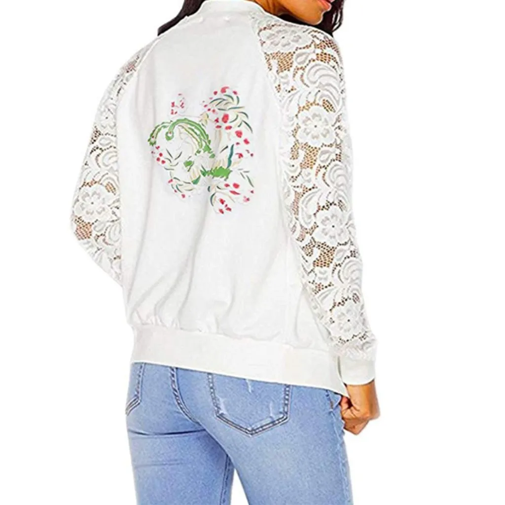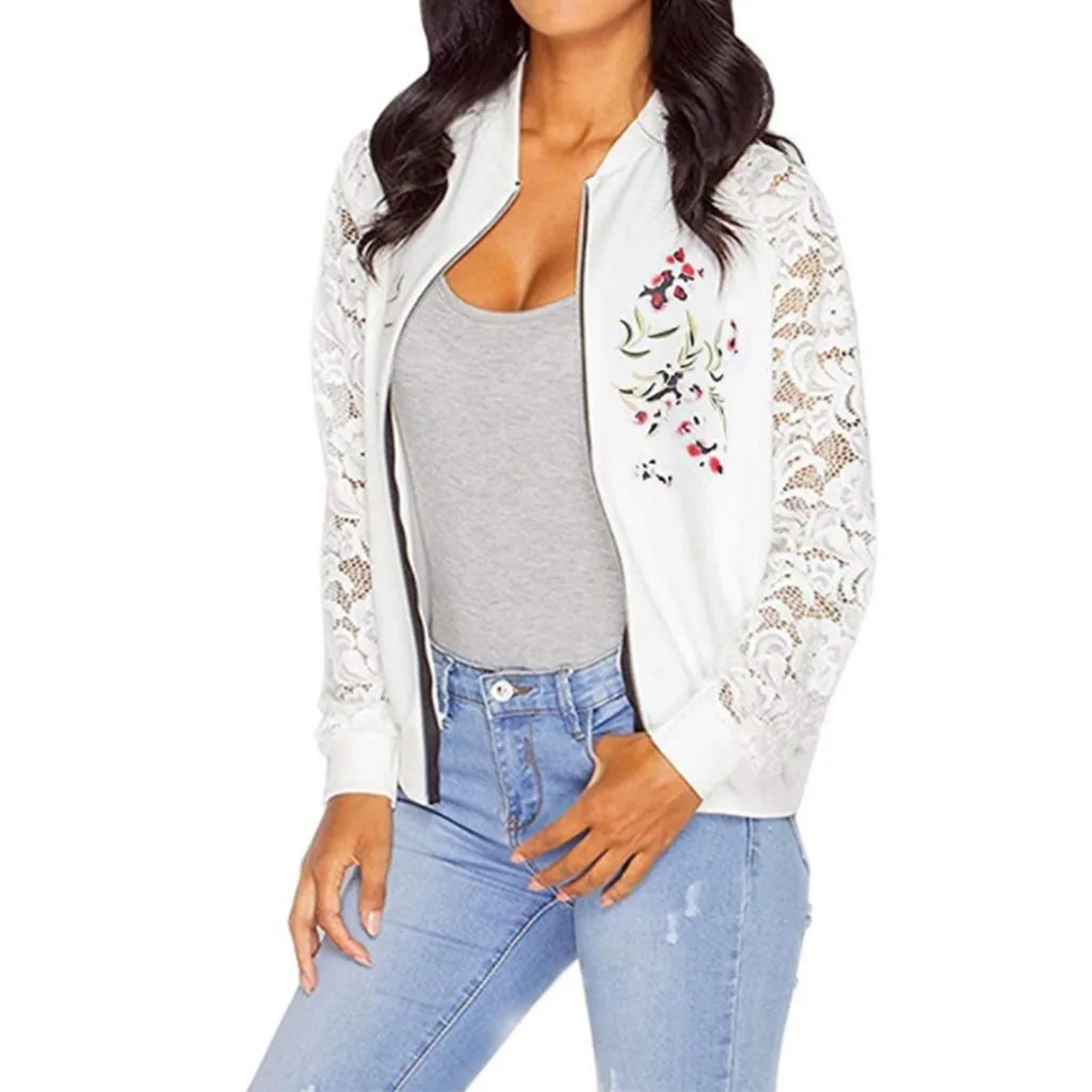 Женская спортивная куртка на молнии с вышитым цветочным принтом, спортивная куртка для бега, верхняя одежда, пальто 2020