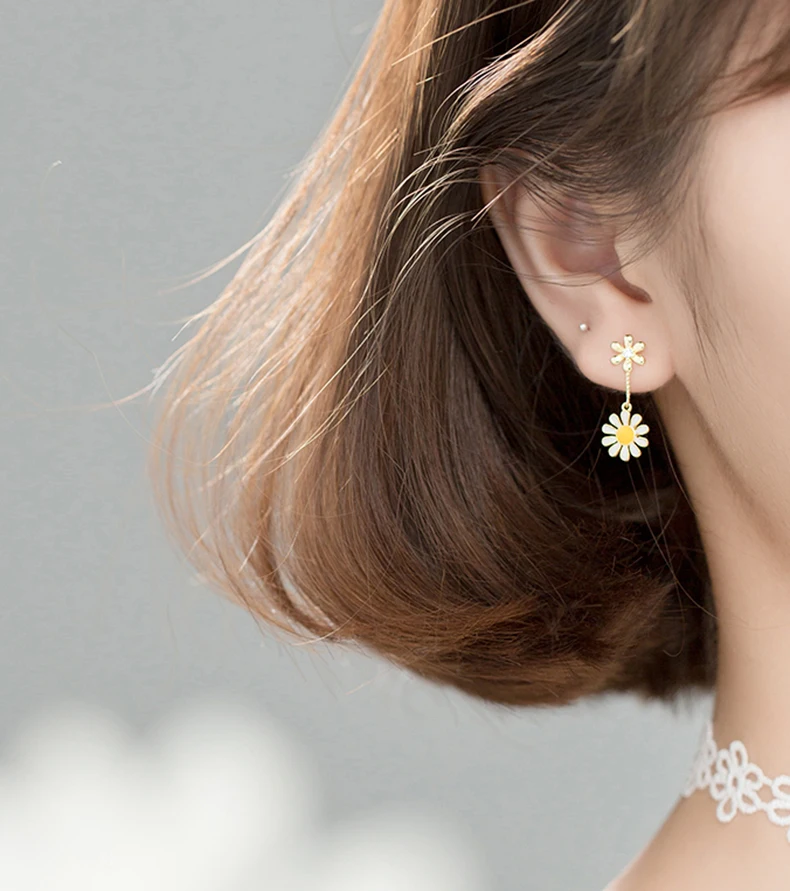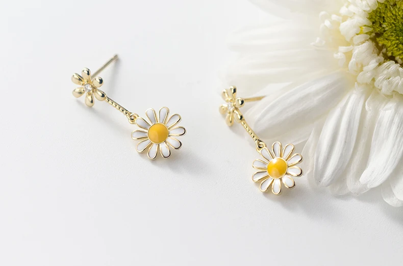 Длинные серьги-подвески с цепочкой и ромашками для женщин, Настоящее серебро 925 пробы, подарки для девушек, дизайнерские Изящные ювелирные изделия, тайское серебро