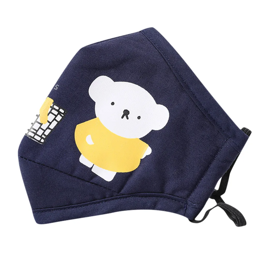 Поставляется с 1 фильтром, просто вставьте фильтр во внутреннее отверстие маски, его можно использовать повторно после стирки и сушки. Модный дизайн с милым медведем из мультфильма очень популярен среди детей.