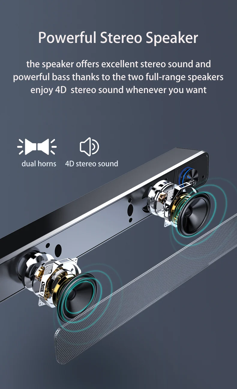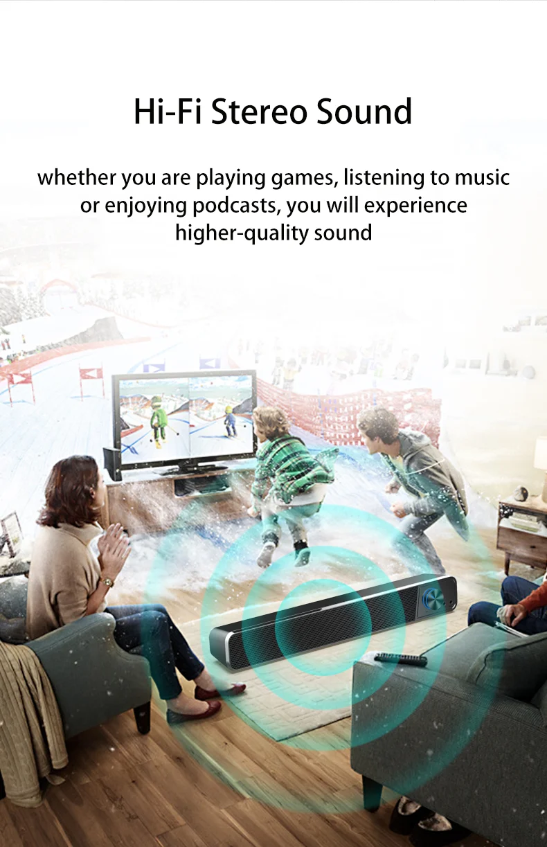Со встроенным сабвуфером обеспечивает мощный бас, улучшает домашние аудиосистемы, отлично подходит для небольших условий, подходит для телевизоров Bluetooth, включая Samsung, Visio, TCL, LG, Sharp, Philips, Sony, xiaomi и много других телевизоров и телефонов.