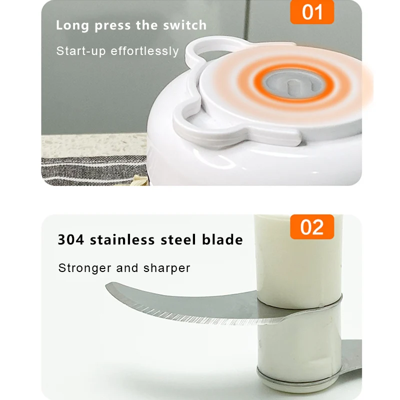 4.Экономия времени и экономия труда:Этот Электрический измельчитель поможет вам нарезать чеснок, морковь, овощи и орехи. Измельчитель чеснока сэкономит много времени на кухне.